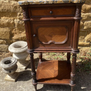 Antique French Marble Top Rosewood Bedside Nightstand, c 1890