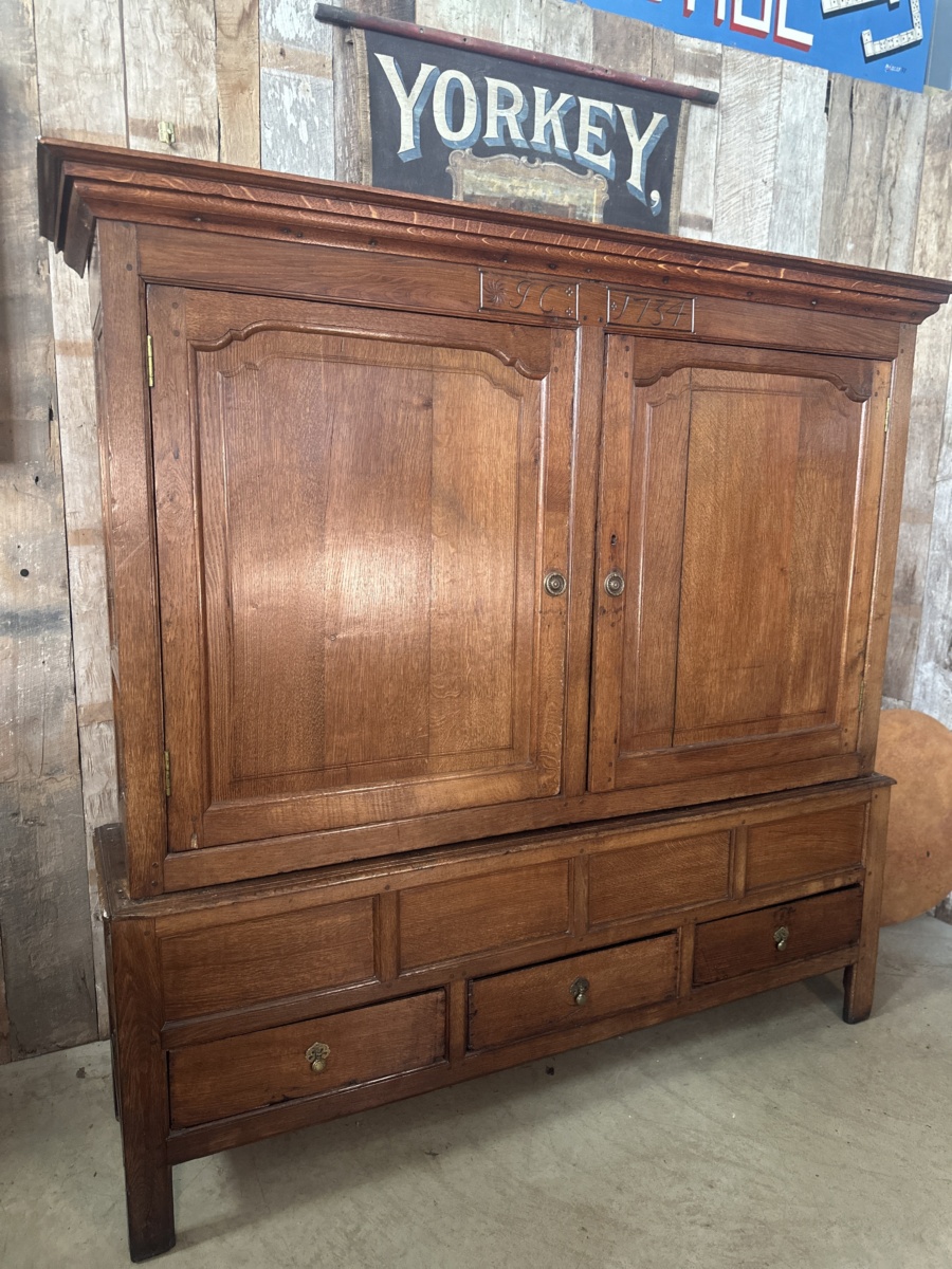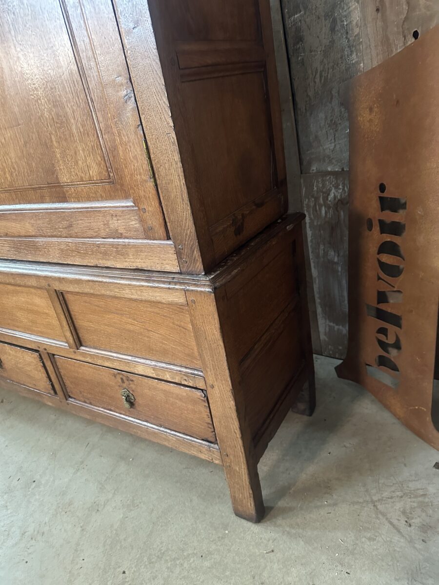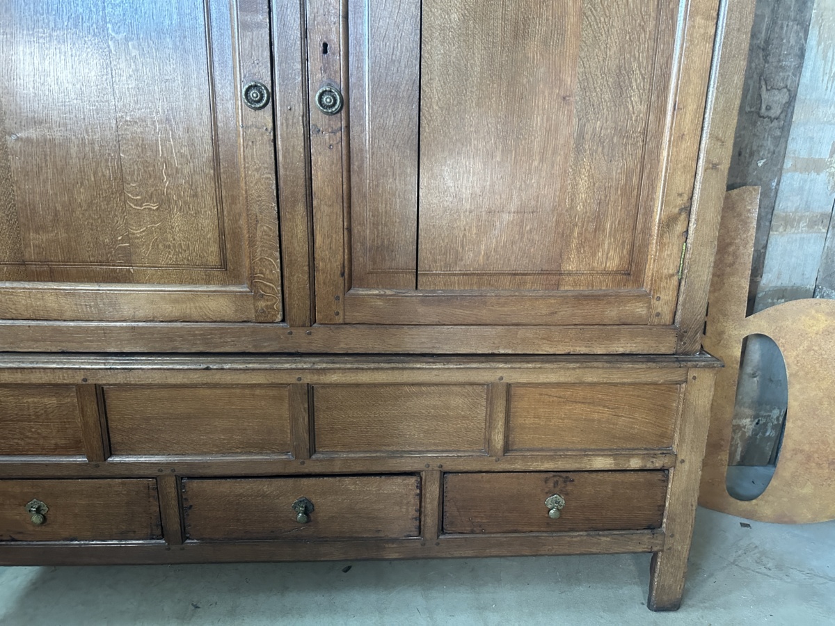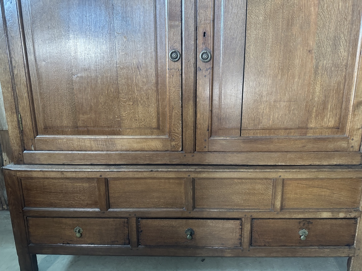 Antique Georgian Country Oak Linen Press Cupboard, c 1730