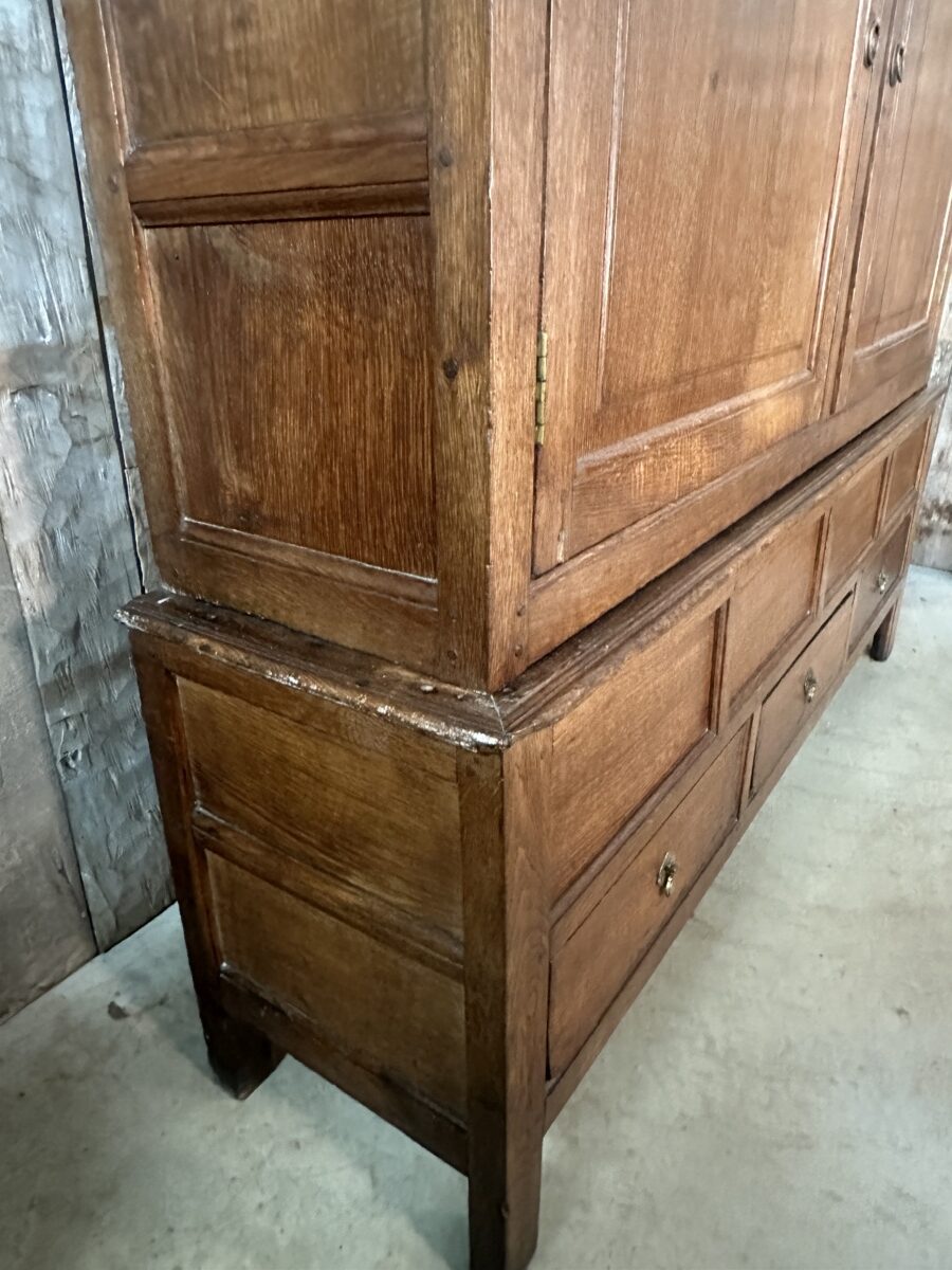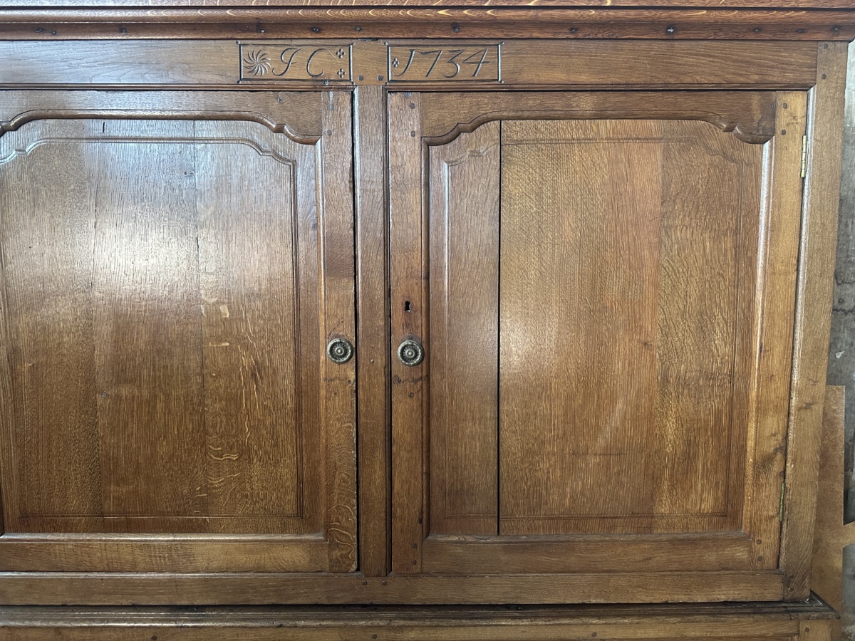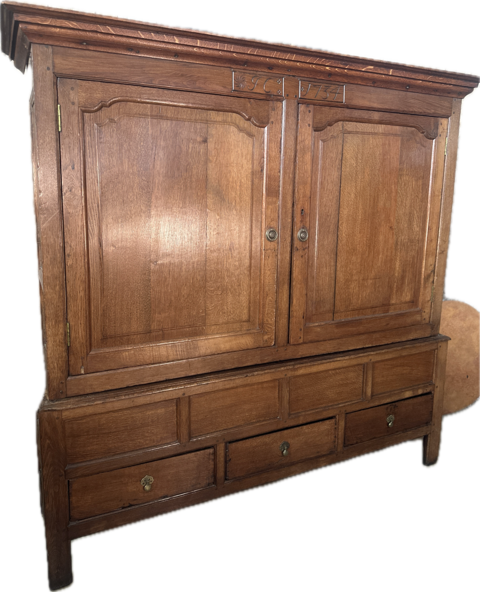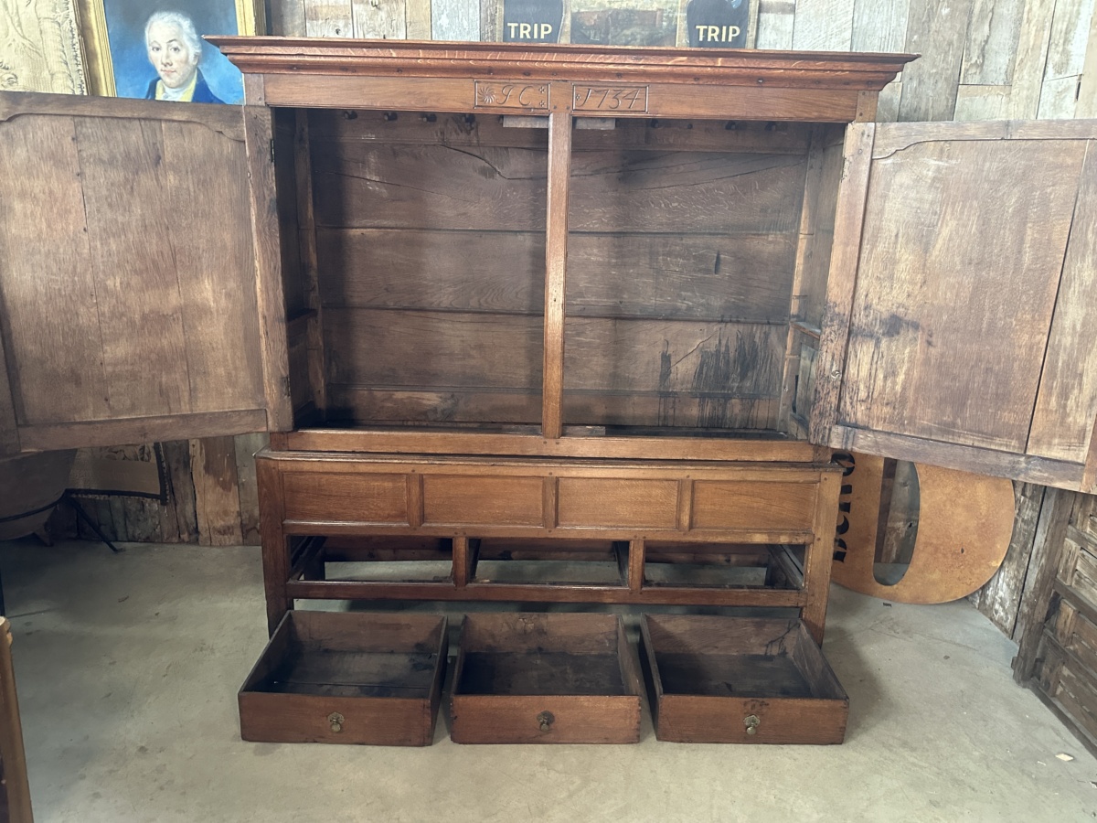 Antique Georgian Country Oak Linen Press Cupboard, c 1730