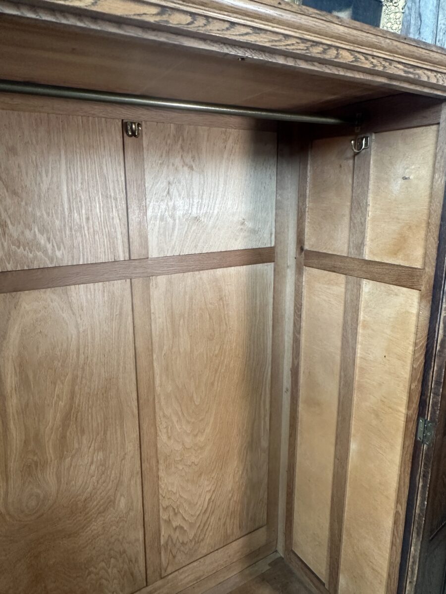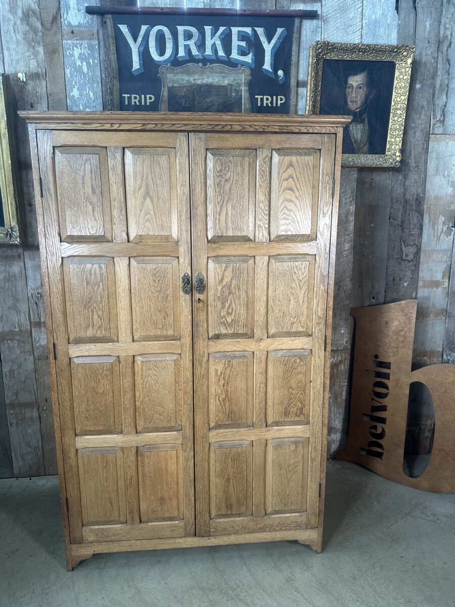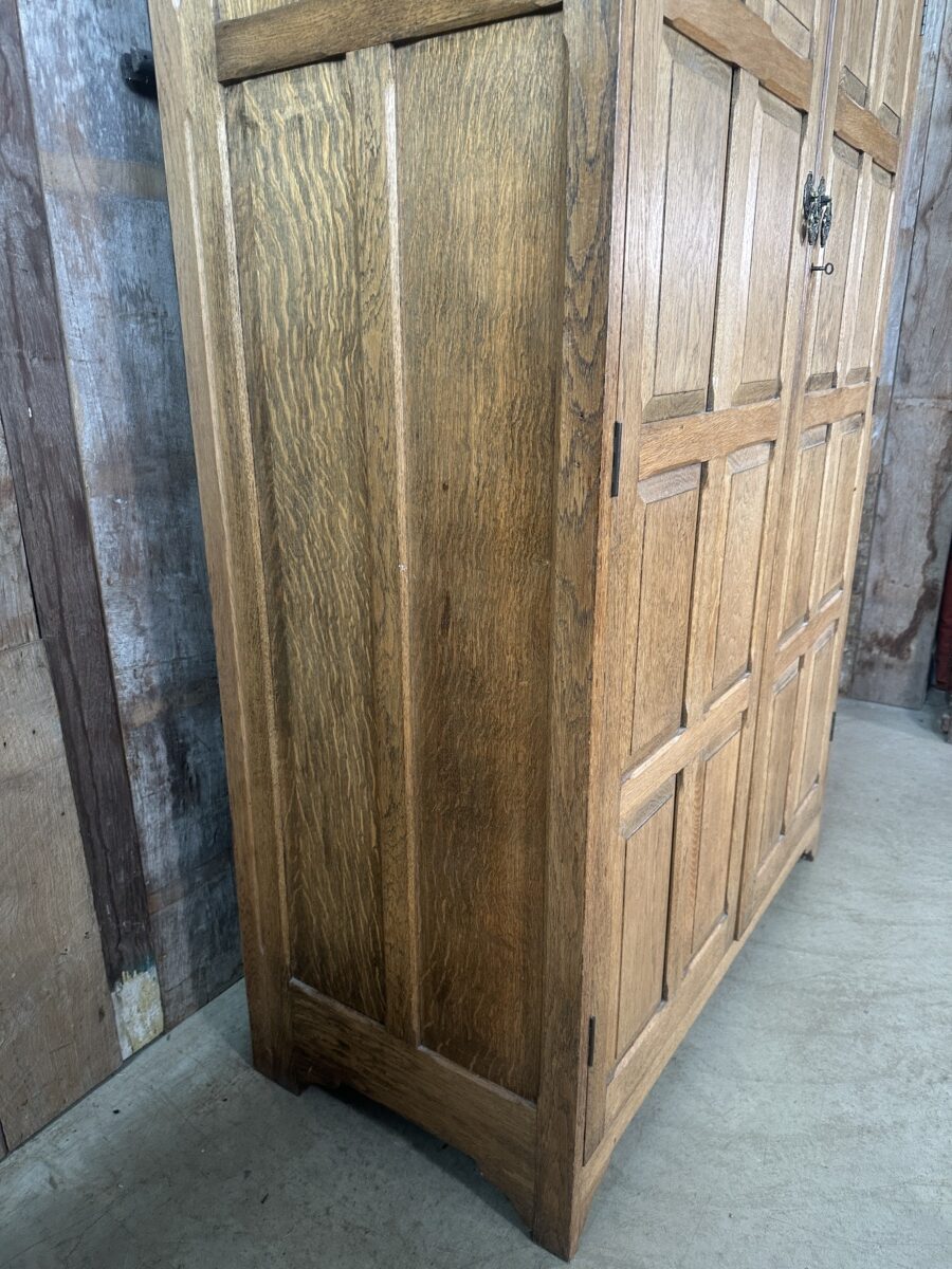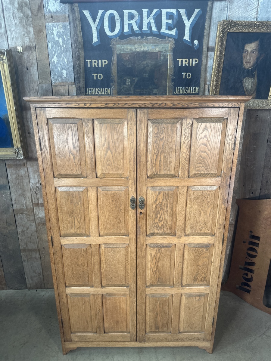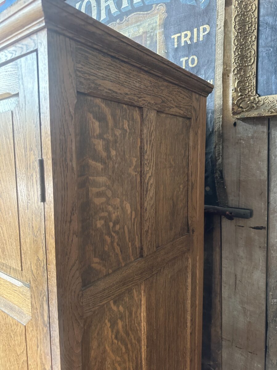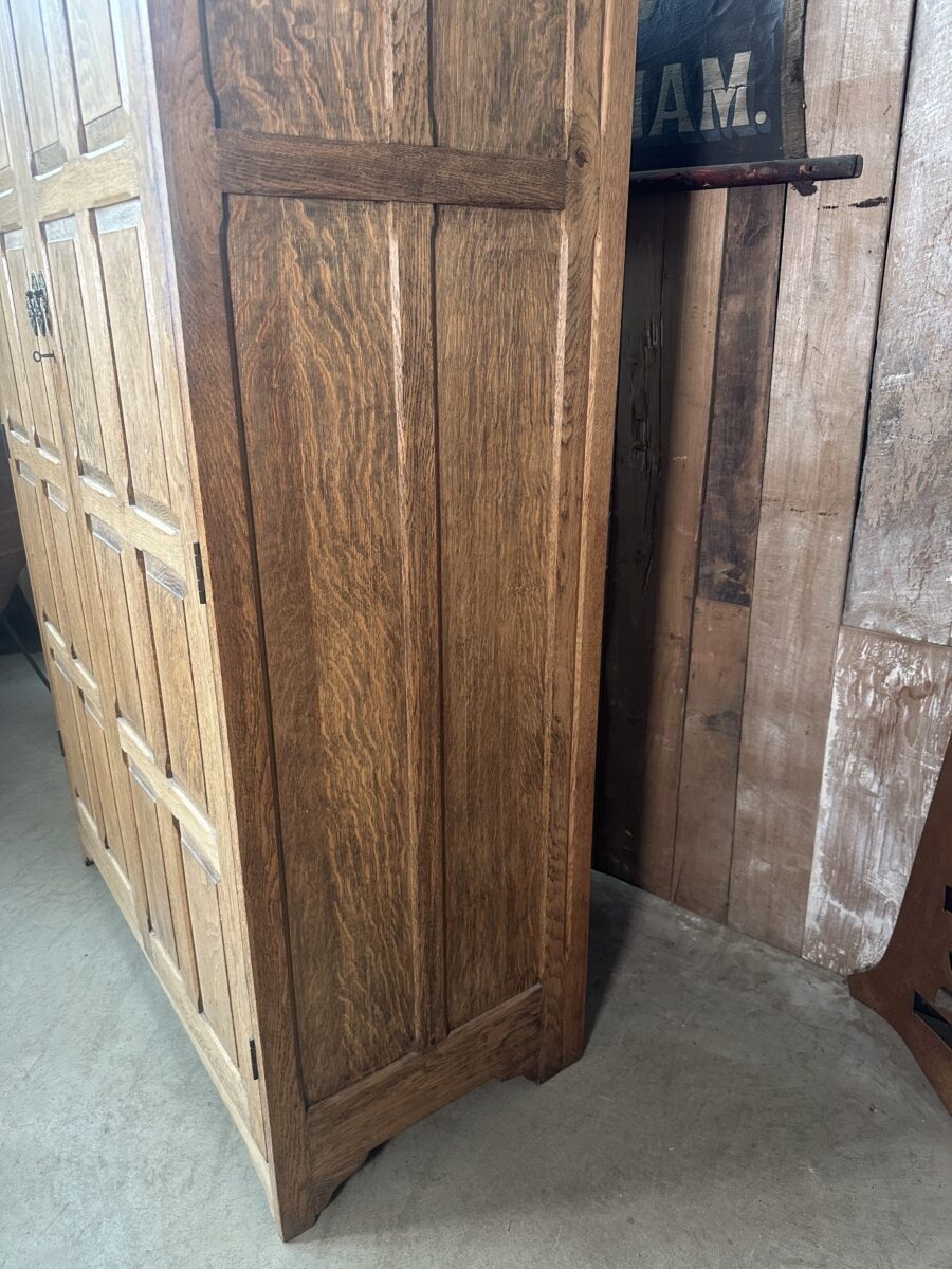 Antique Arts and Crafts Oak Panelled Double Wardrobe Armoire, c 1930