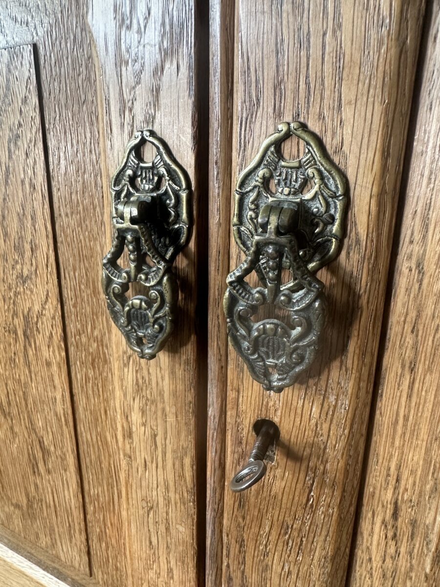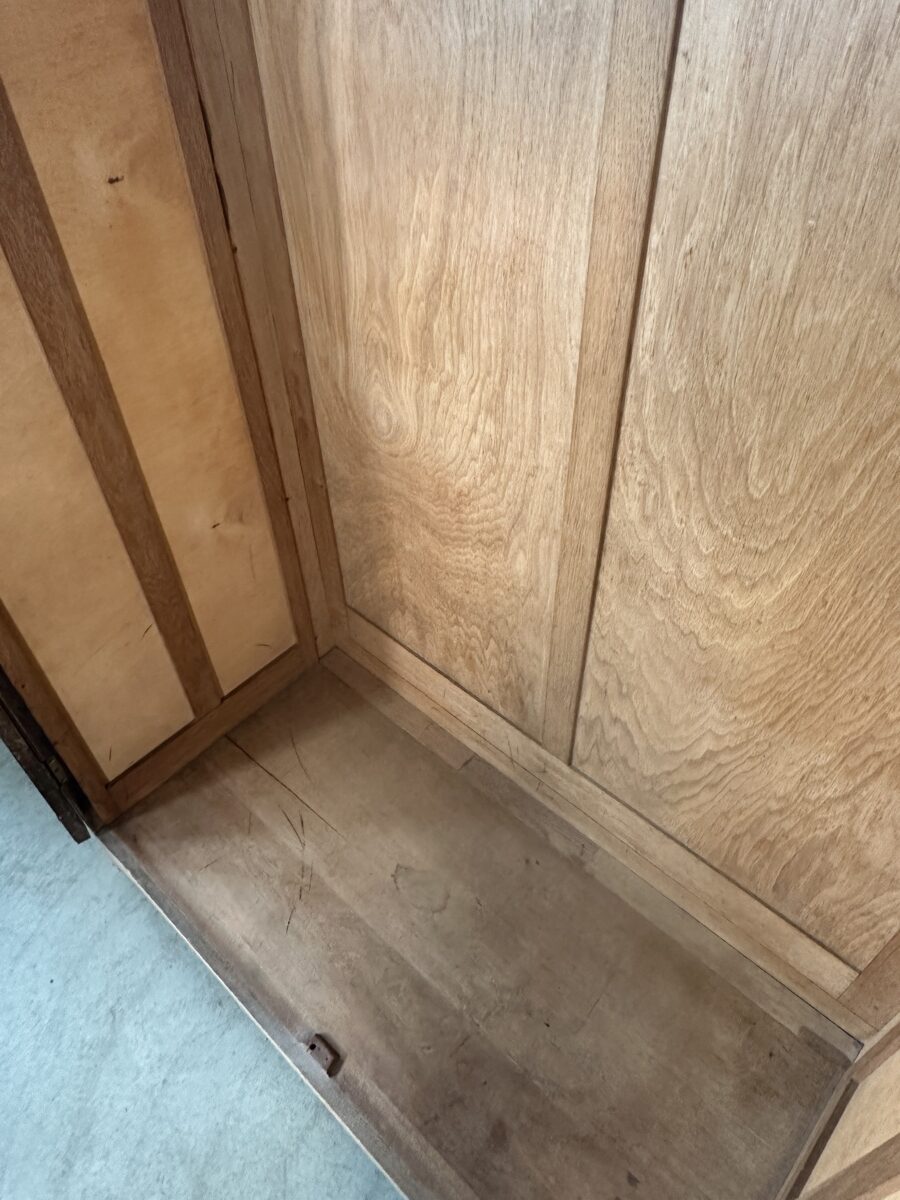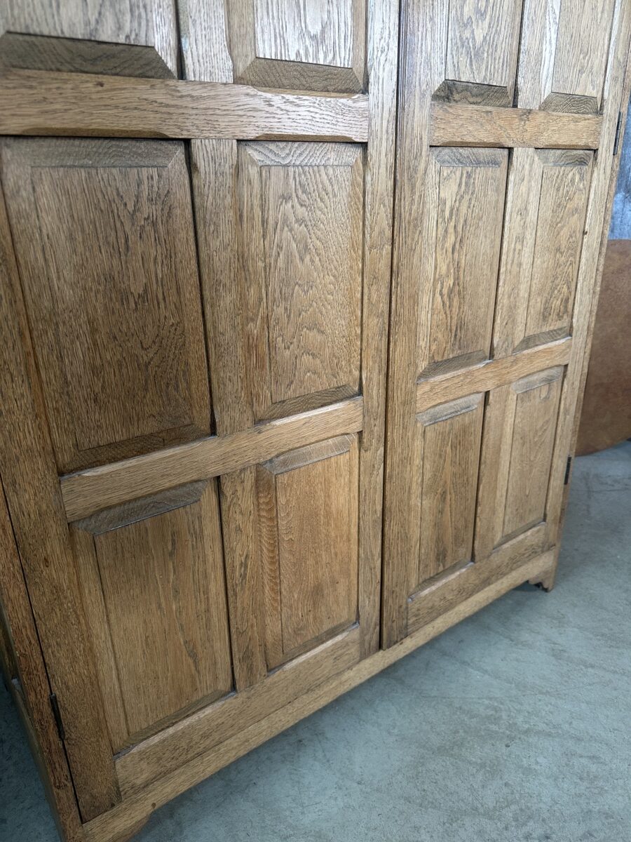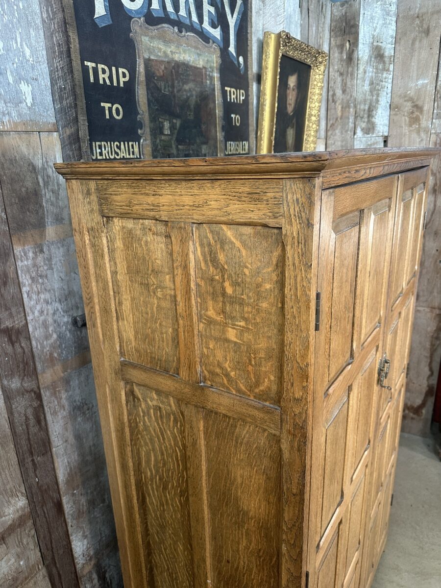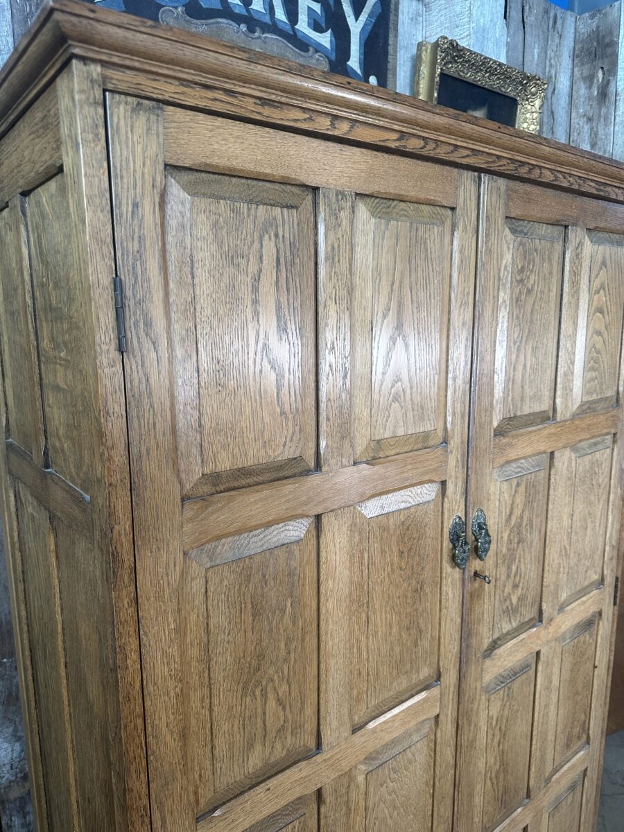 Antique Arts and Crafts Oak Panelled Double Wardrobe Armoire, c 1930