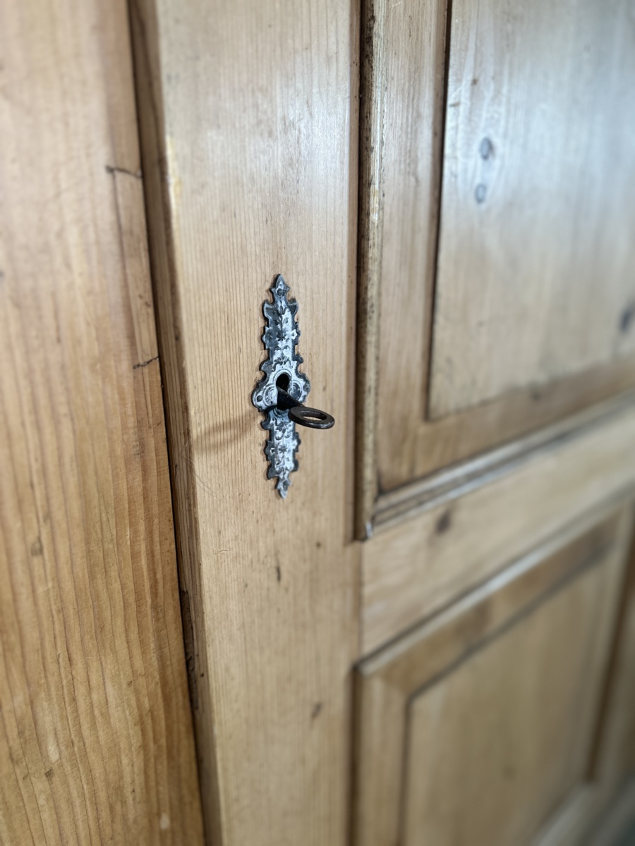 Antique French Pine Armoire Hall Robe, c 1870