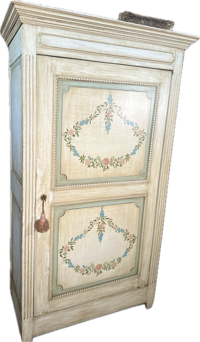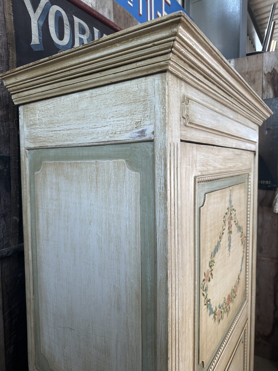 Antique Hand Painted French Cream Armoire Wardrobe Cupboard, c1920