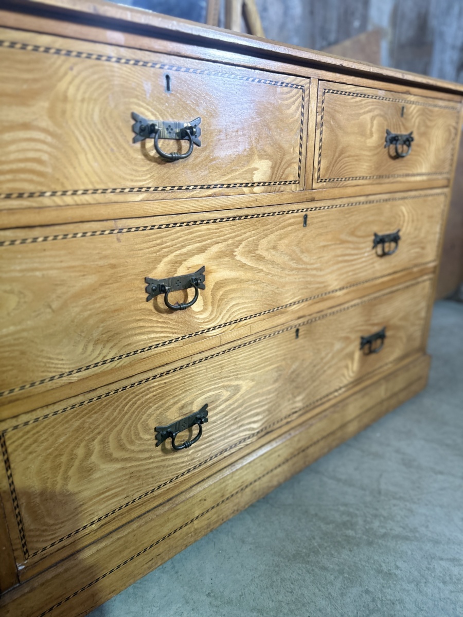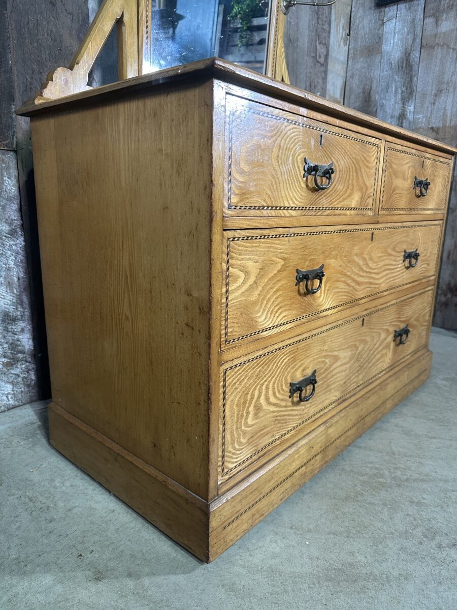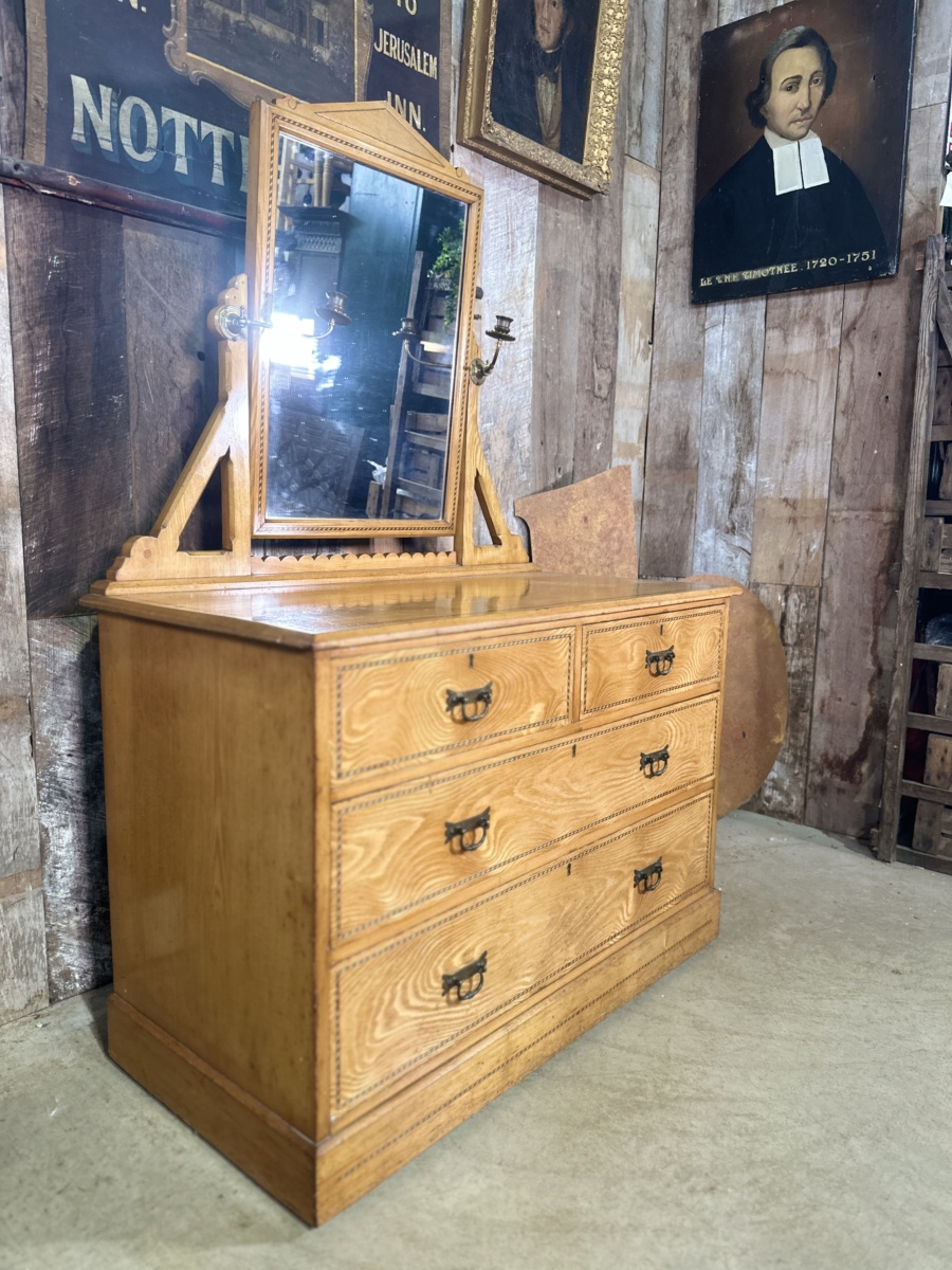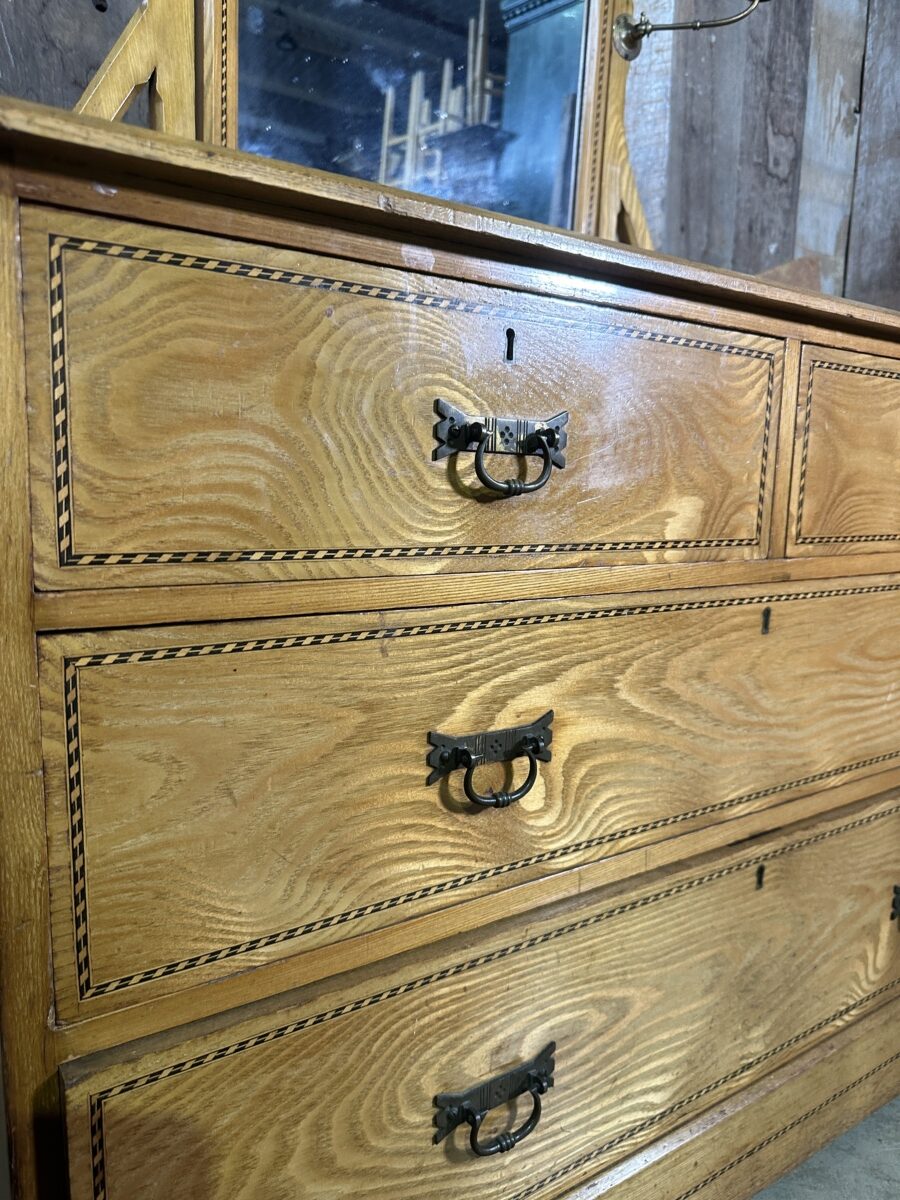 Antique Arts and Crafts Golden Ash Dressing Table Chest of Drawers, c 1890.
