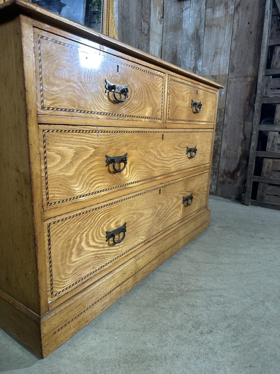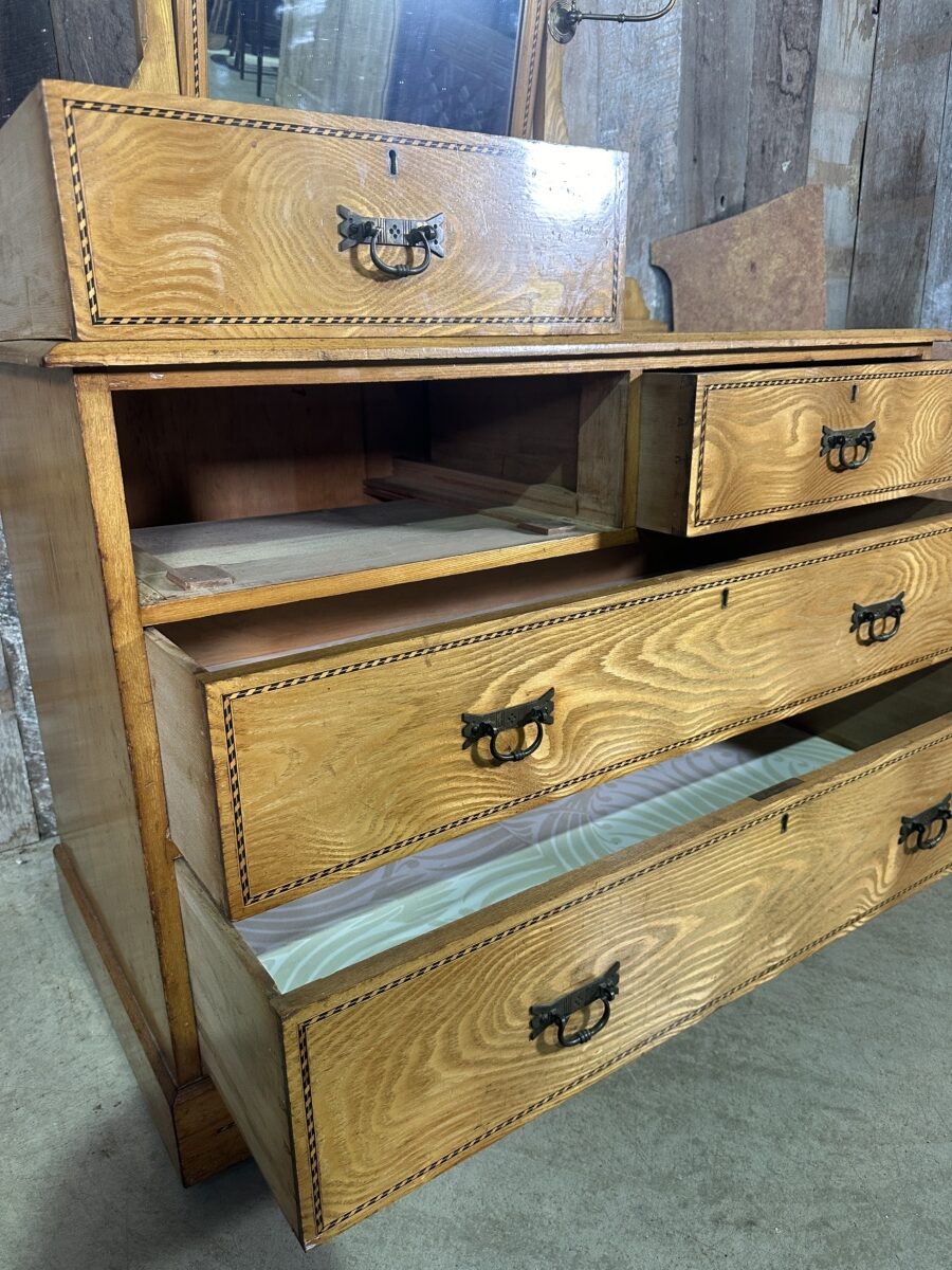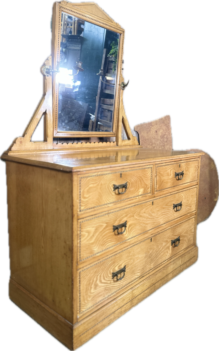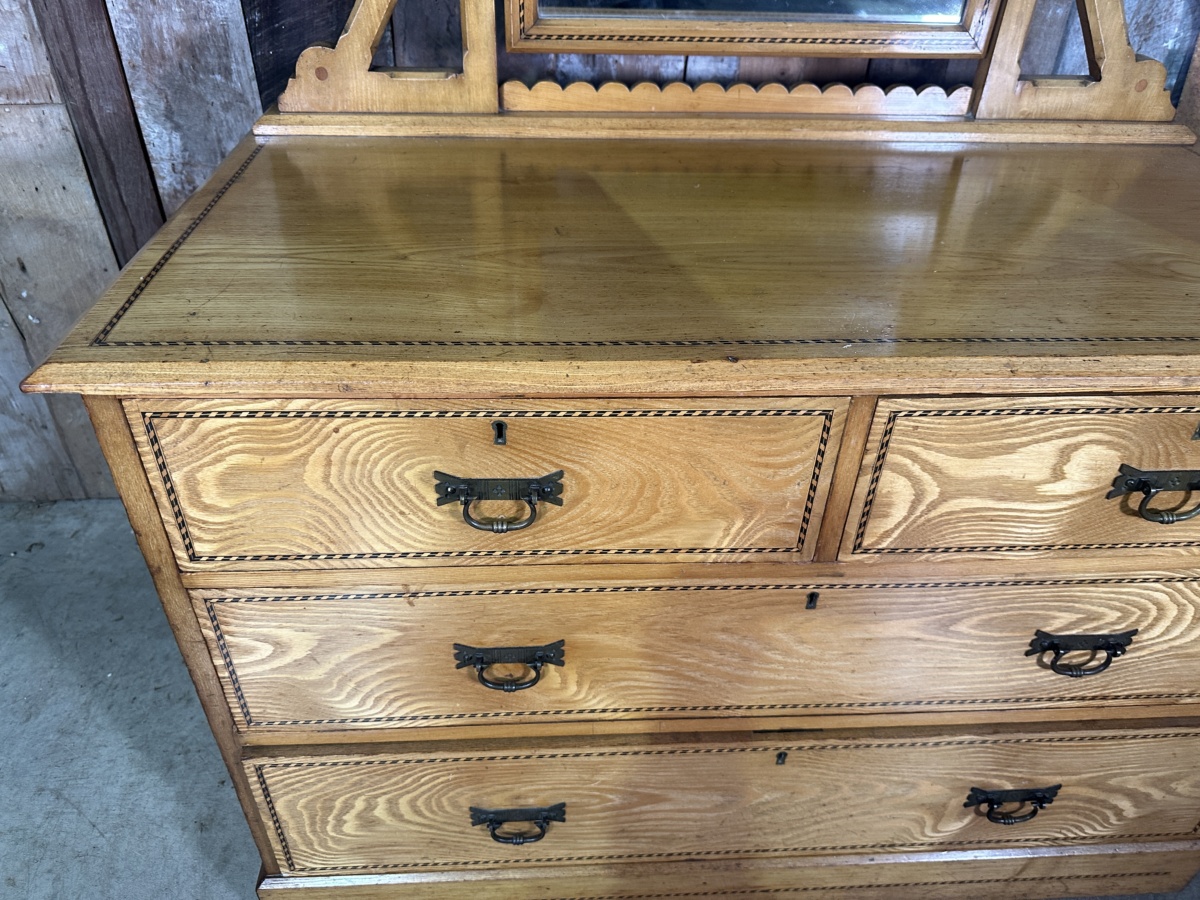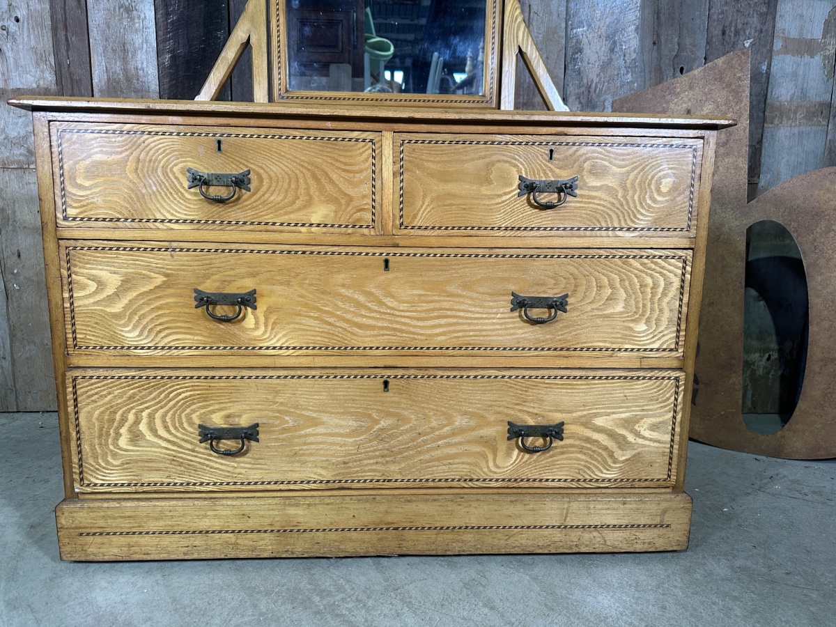 Antique Arts and Crafts Golden Ash Dressing Table Chest of Drawers, c 1890.