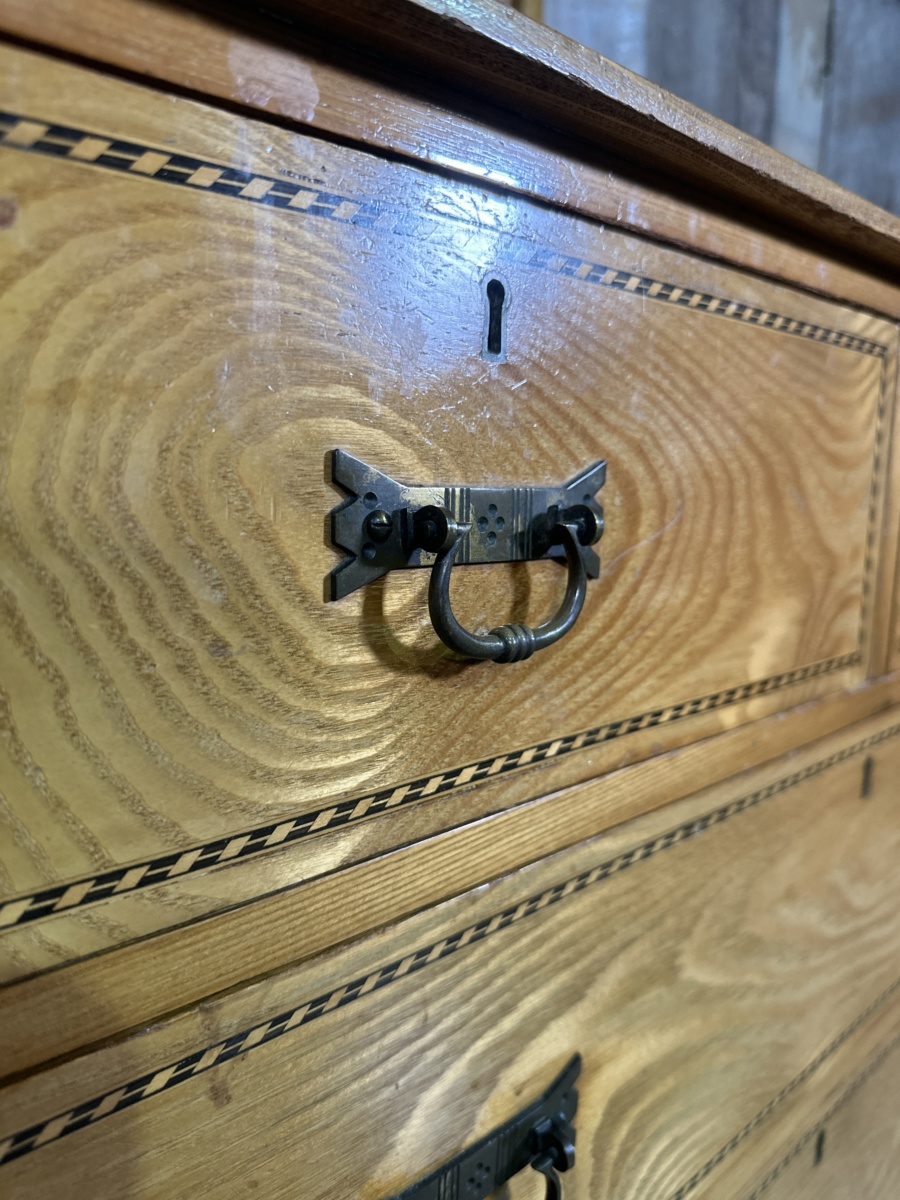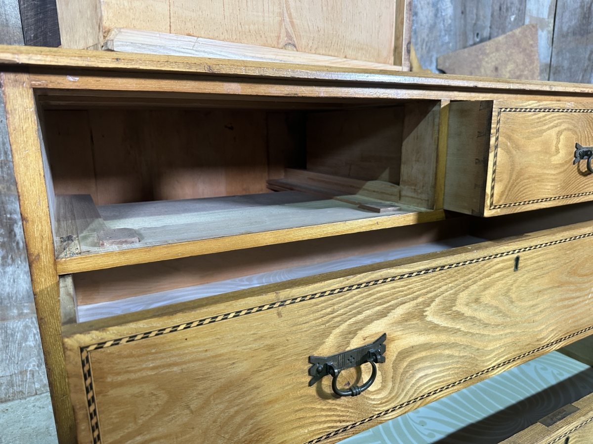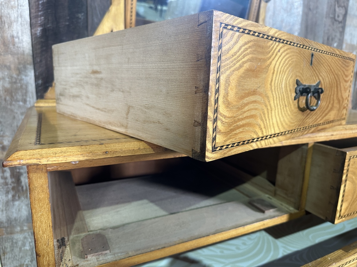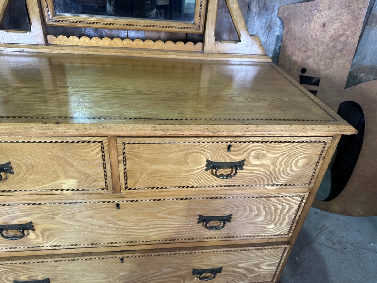 Antique Arts and Crafts Golden Ash Dressing Table Chest of Drawers, c 1890.