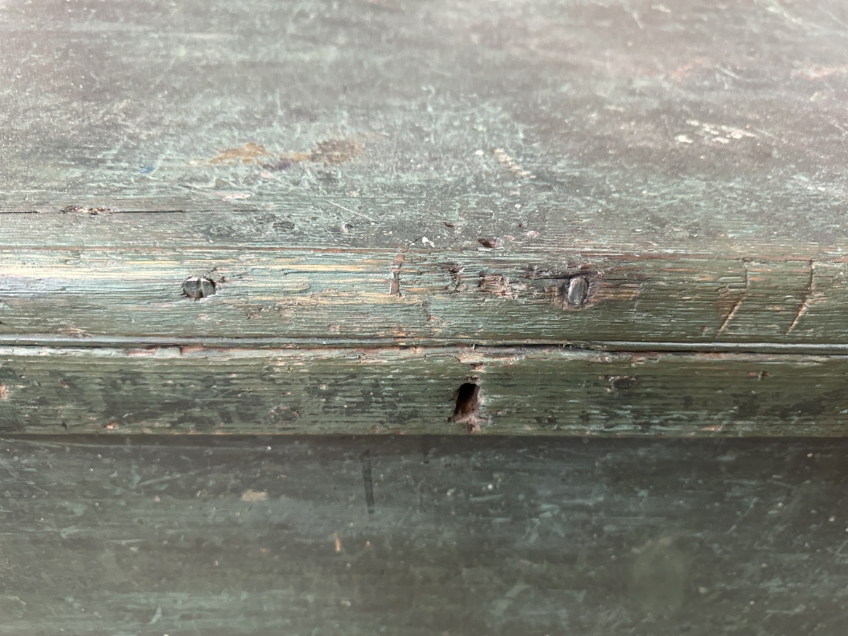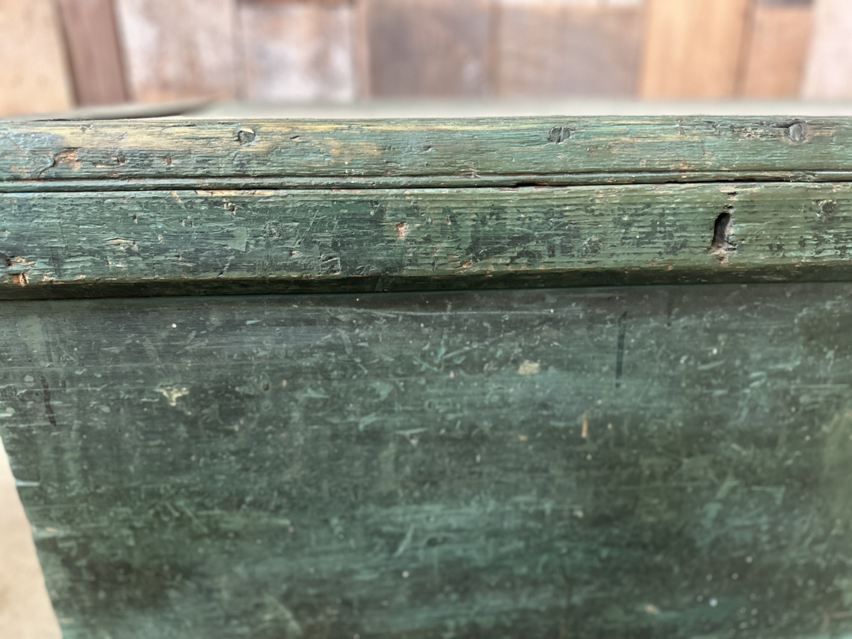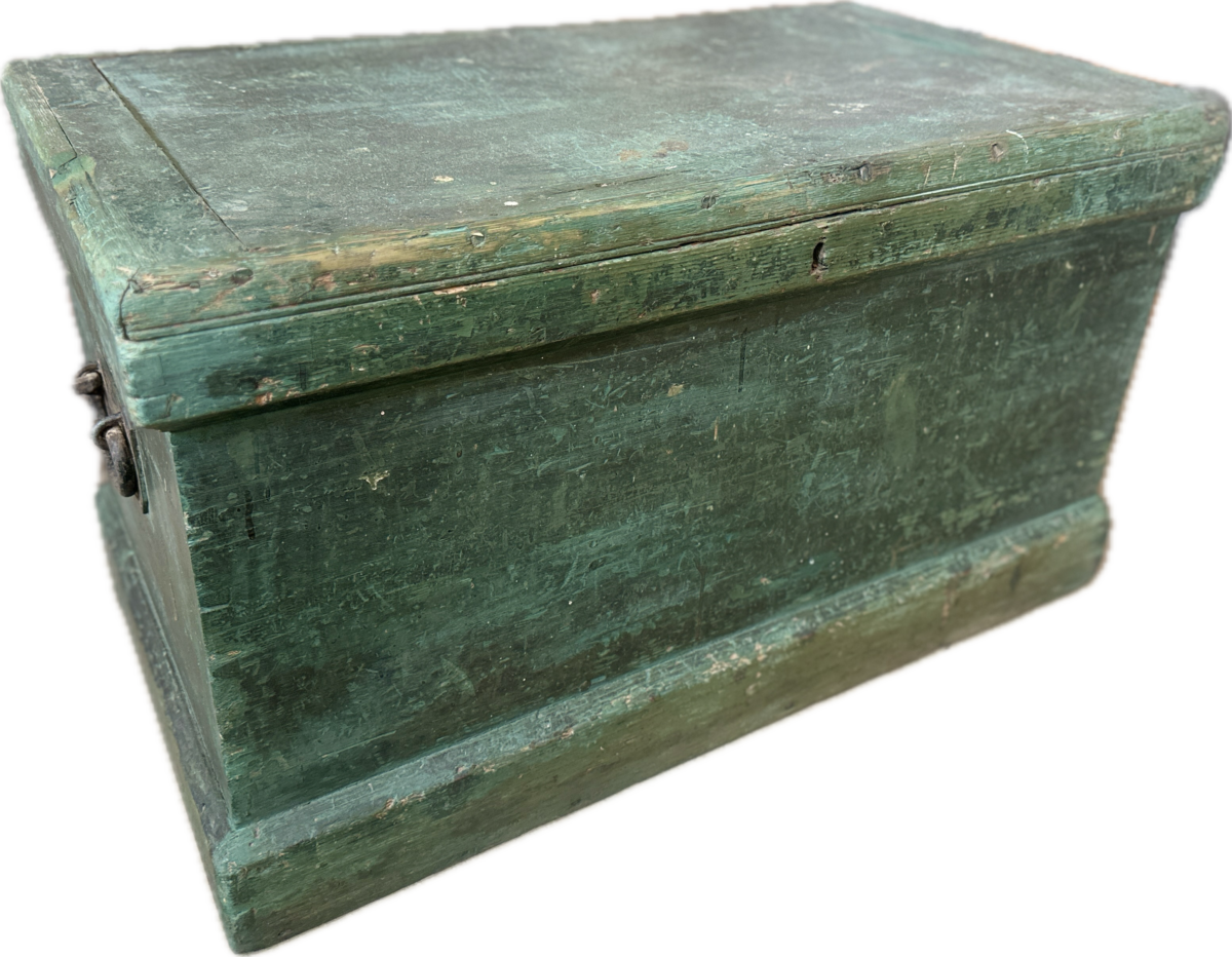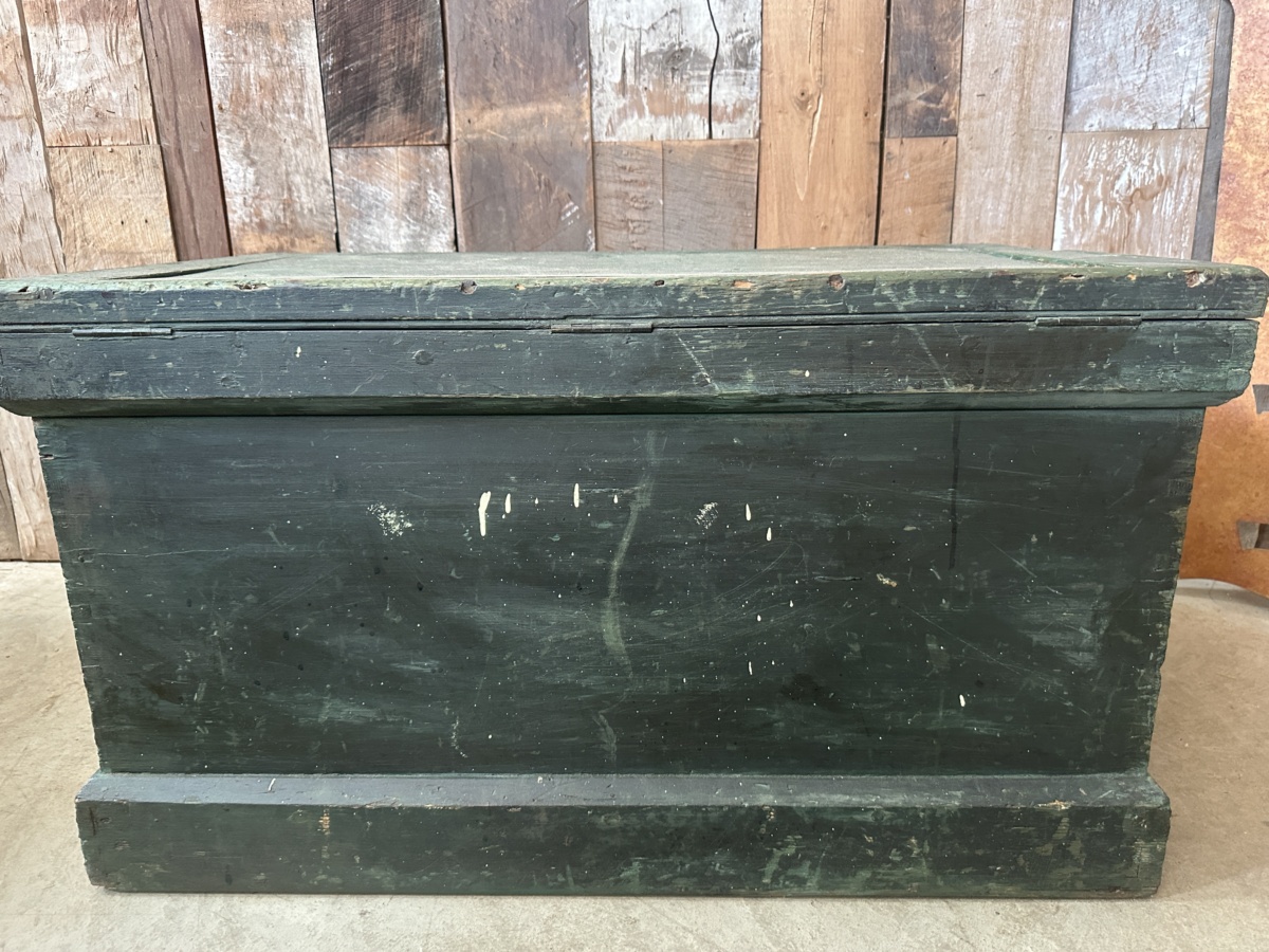 Antique Victorian Large Trunk Green Storage Box Coffer, c 1860