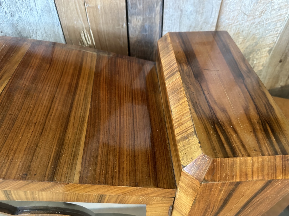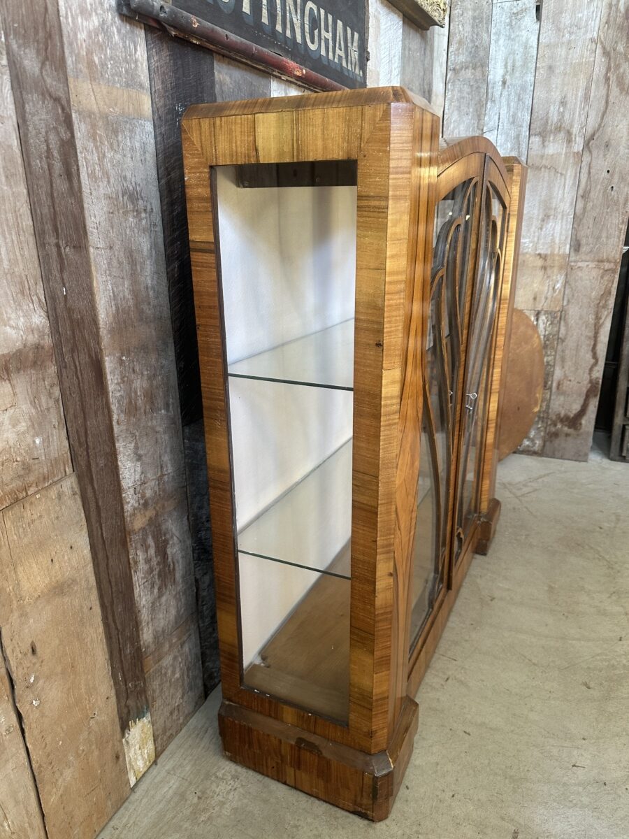 Antique Art Deco Walnut Cloud Display Glazed Cabinet