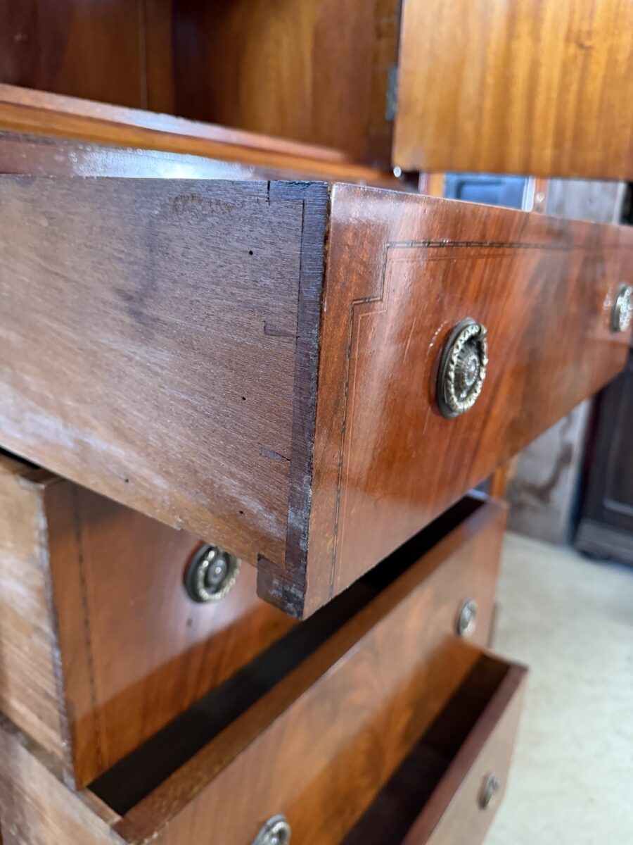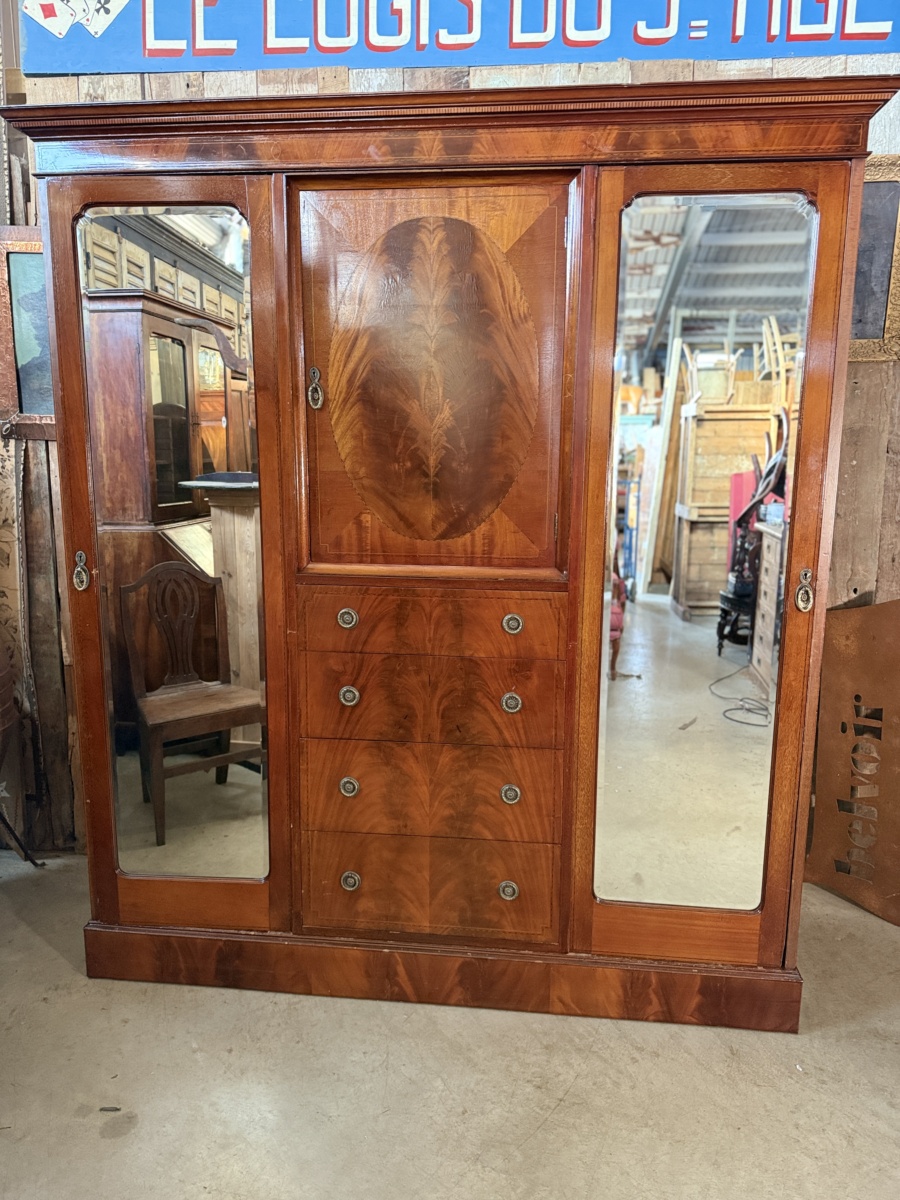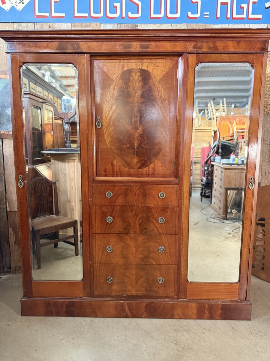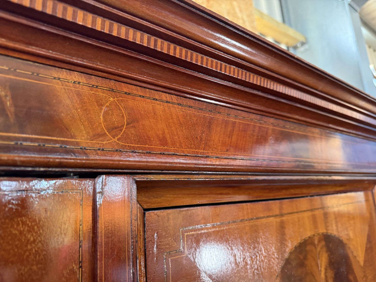 Antique Edwardian Sheraton Revival Large Triple Wardrobe Compactum, c 1900