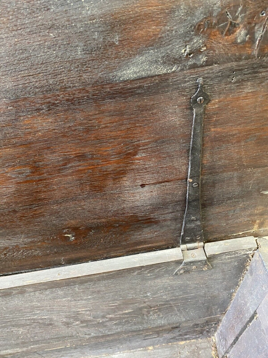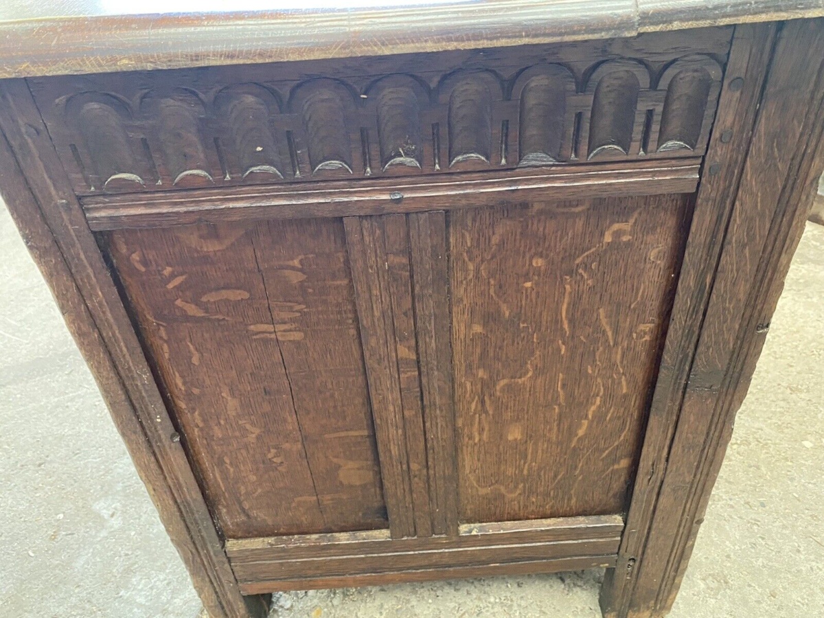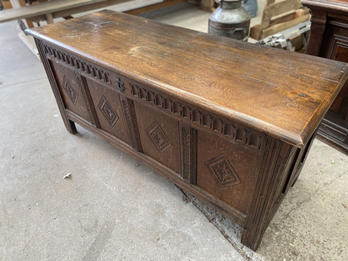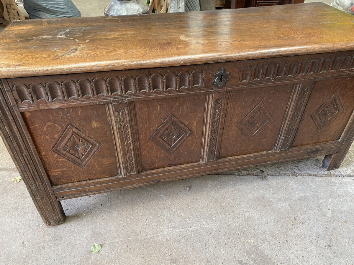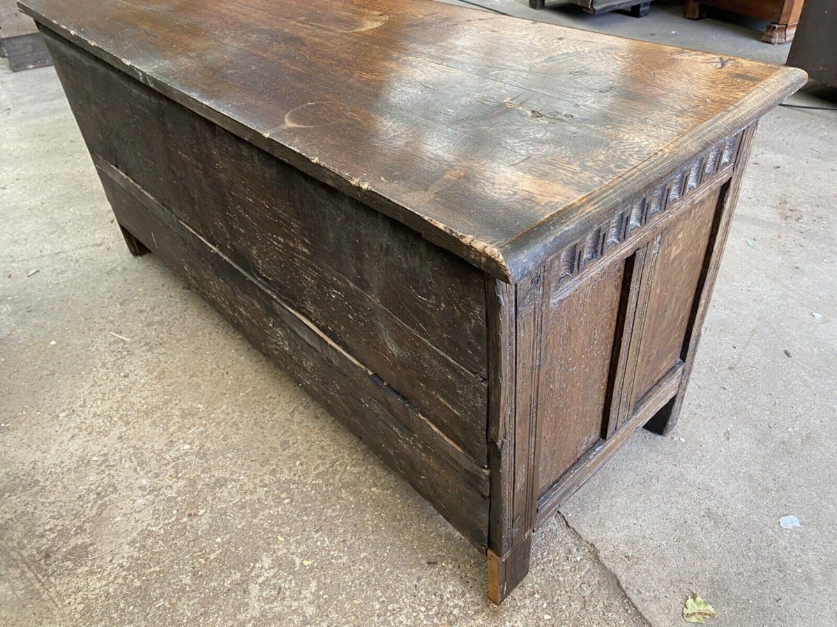 Antique Georgian Carved Oak Coffer Chest Box, c1780