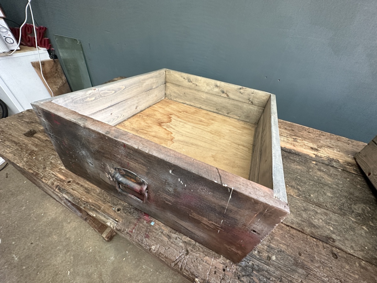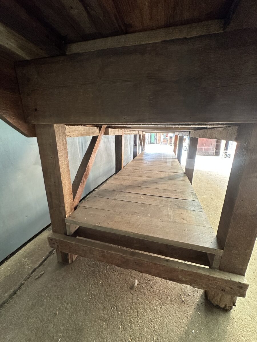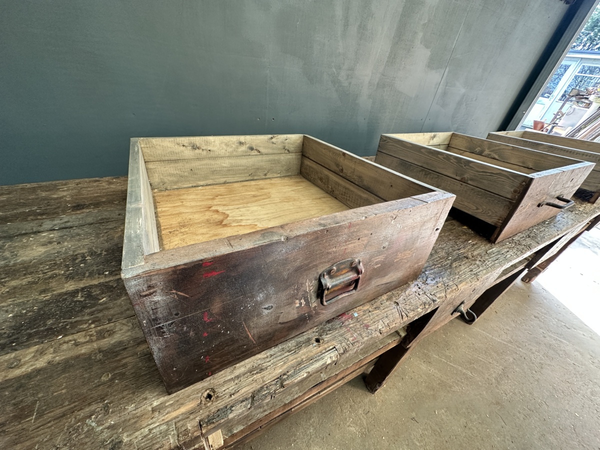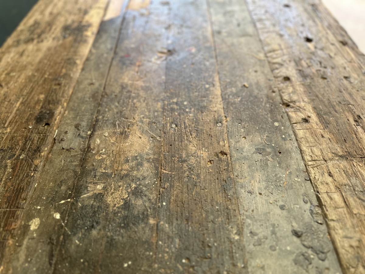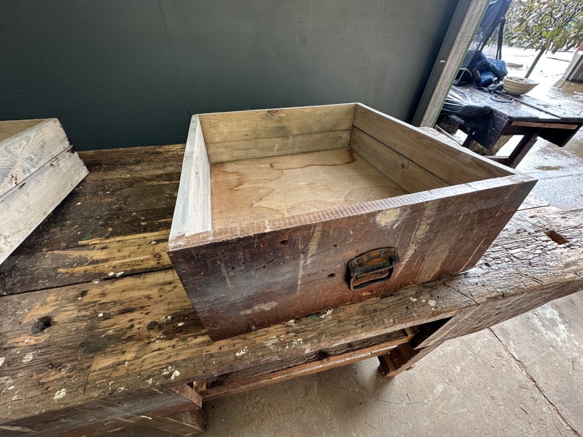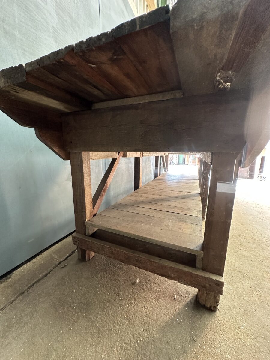 Superb example of a Victorian period Workbench Island, in solid pine. Bearing wonderful signs of craft and workmanship. Thick plank top over row of three deep frieze drawers. Iron handles and hook. Under-shelf section. Excellent colour and patination throughout.