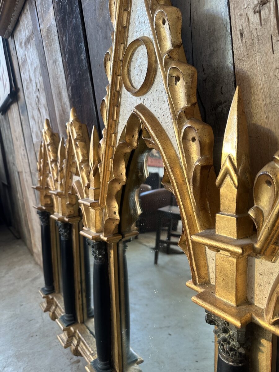 Vintage Gothic Gilt Overmantel Wall Mirror by Harrison and Gil