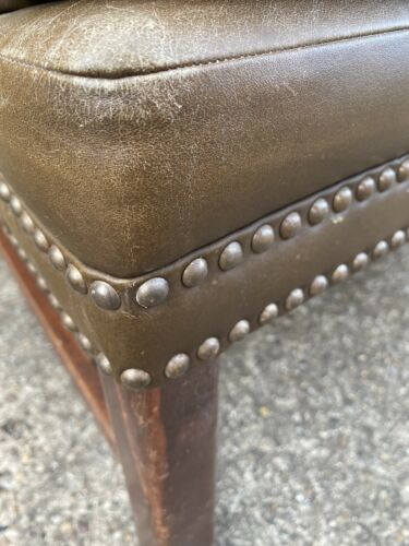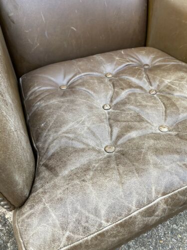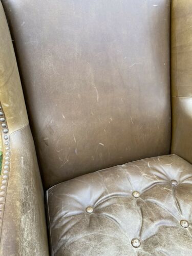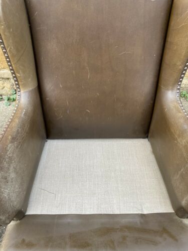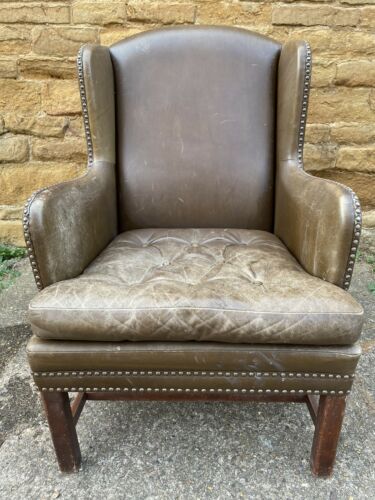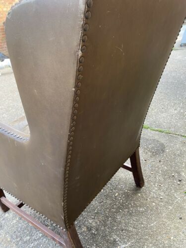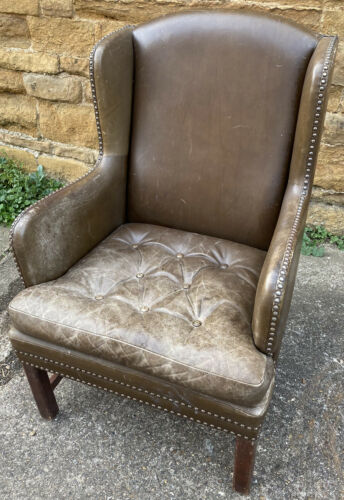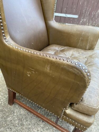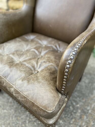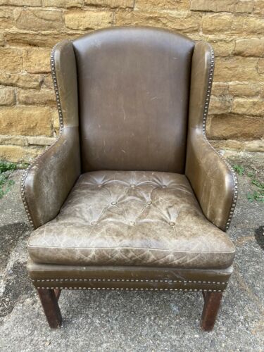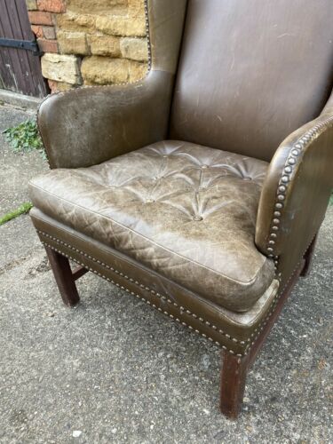 Antique Brown Leather Club Wingback Armchair