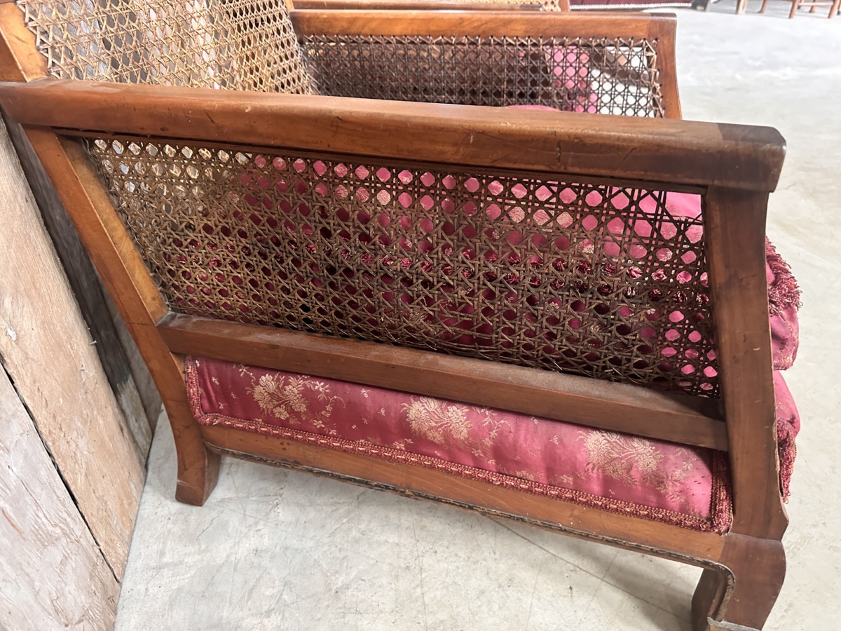 Antique Pair Mahogany Colonial Bergere Armchairs, c 1830