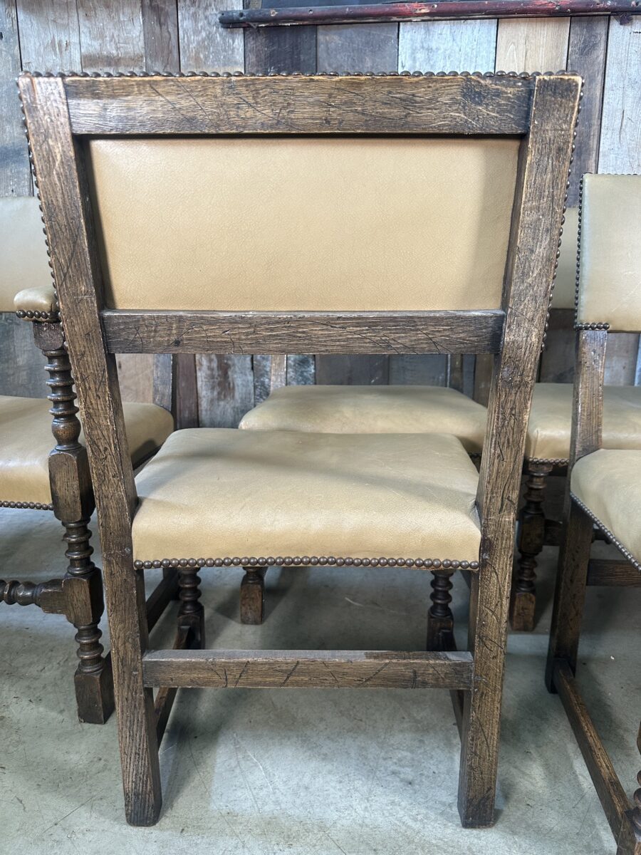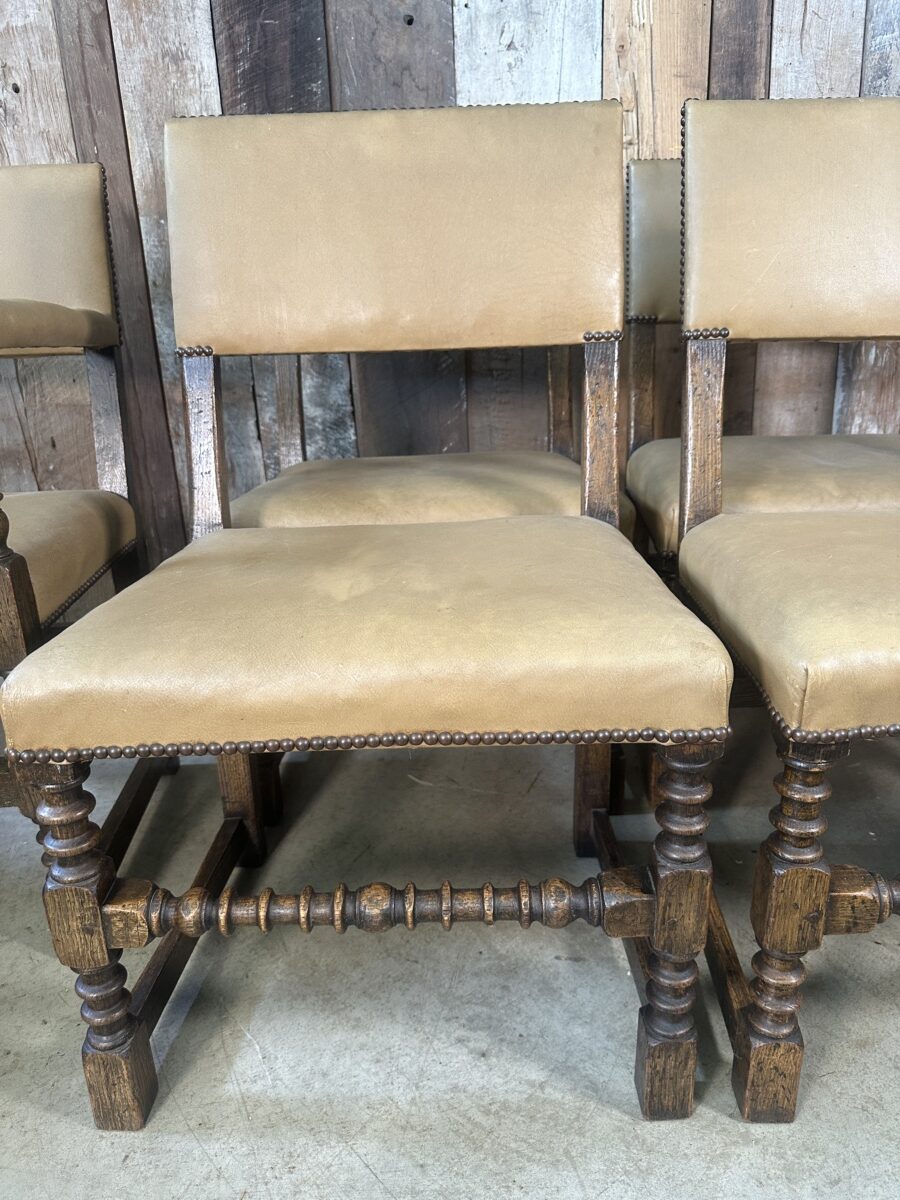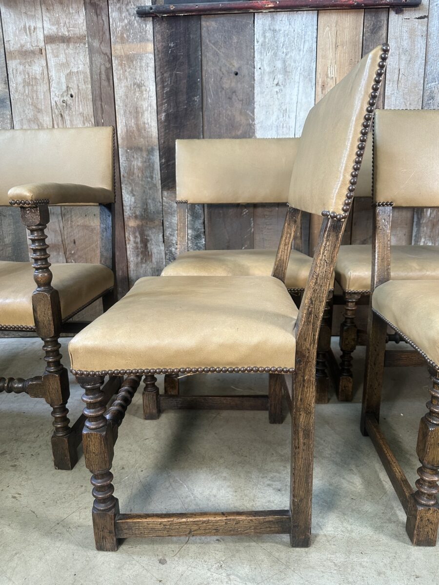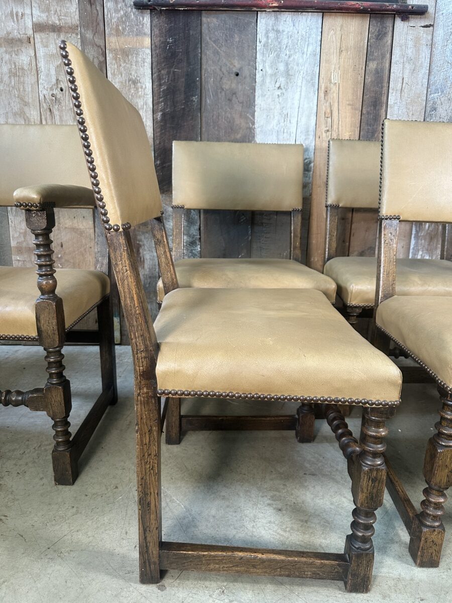 Antique Set Five Oak Leather Dining Cromwellian Chairs, c 1920