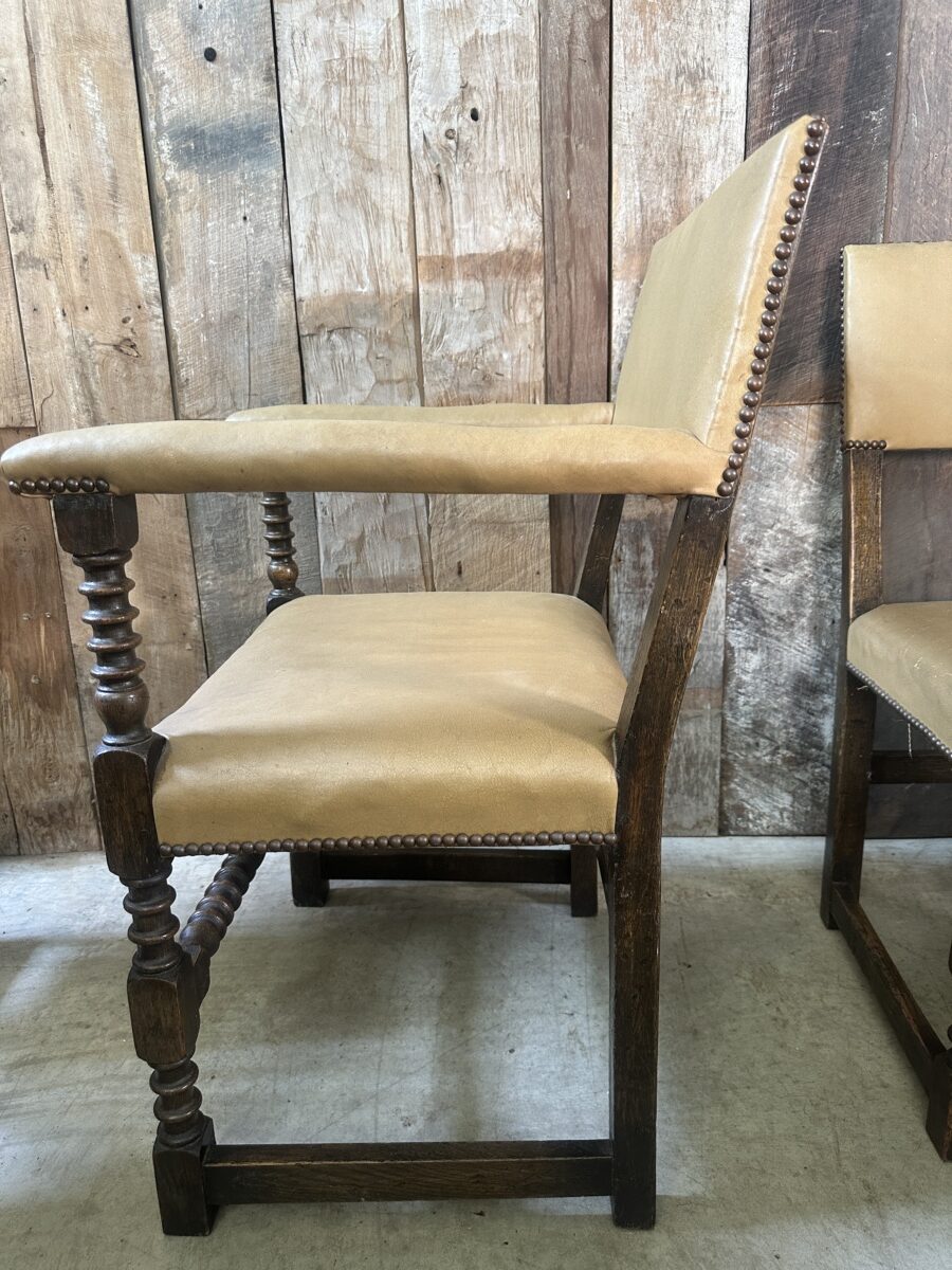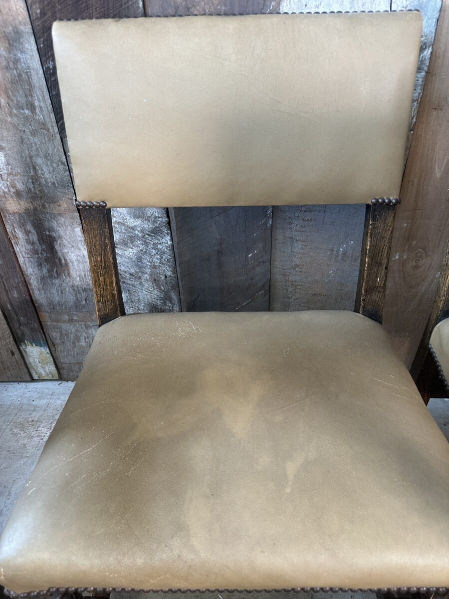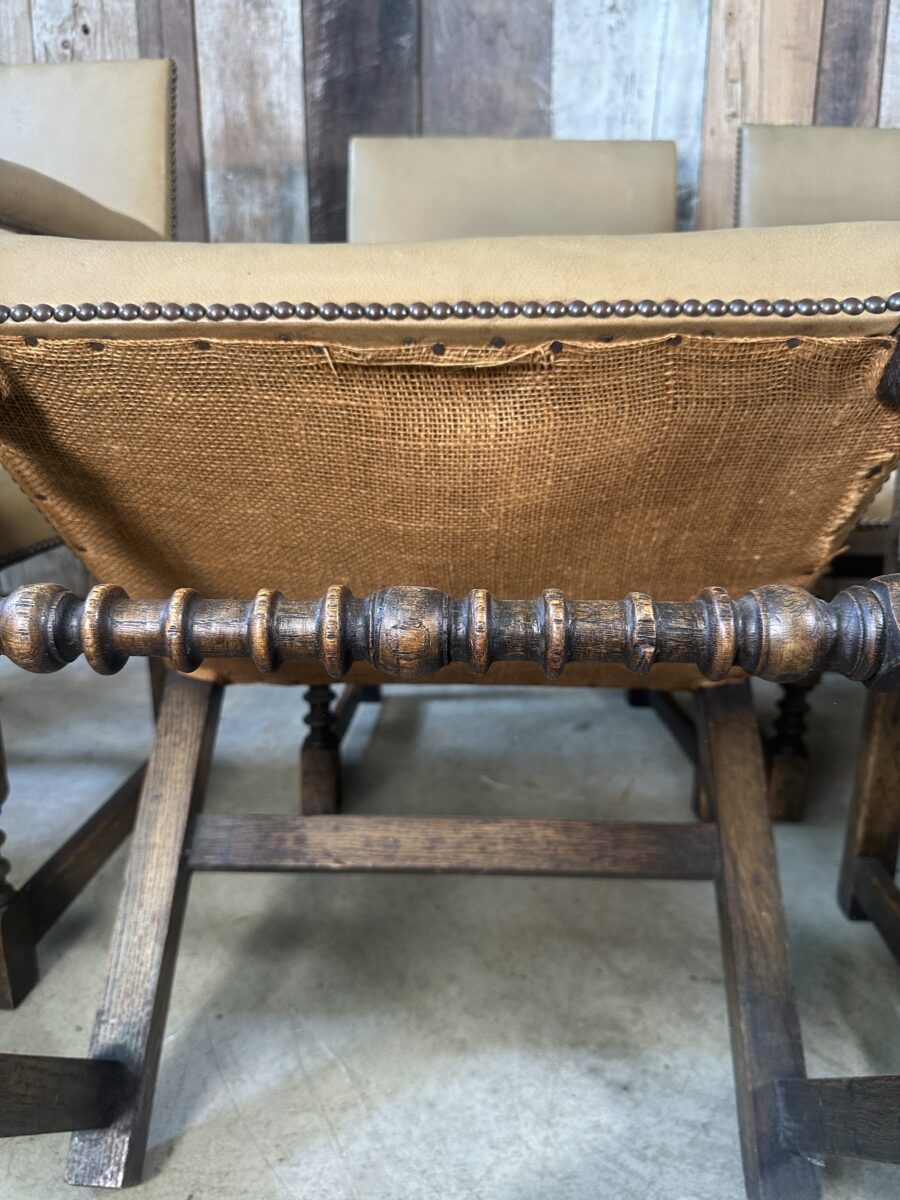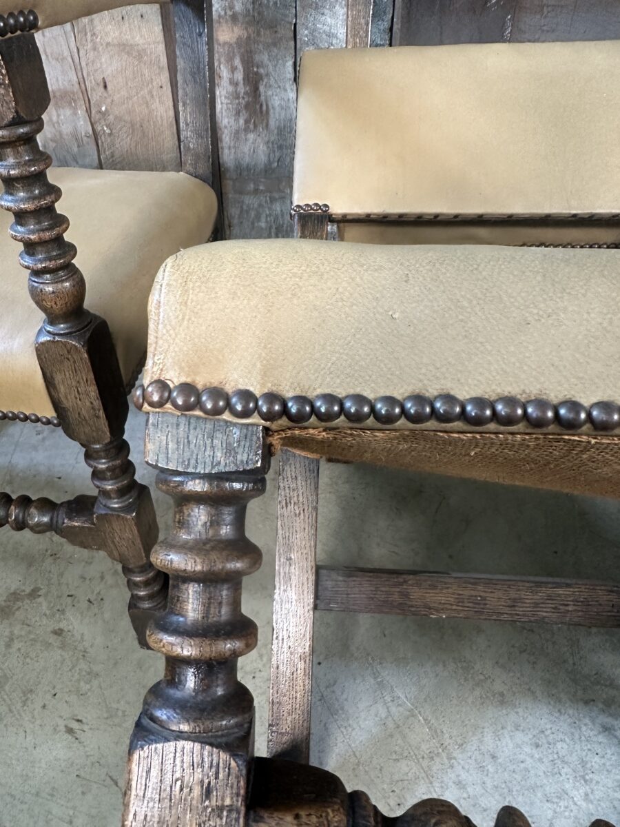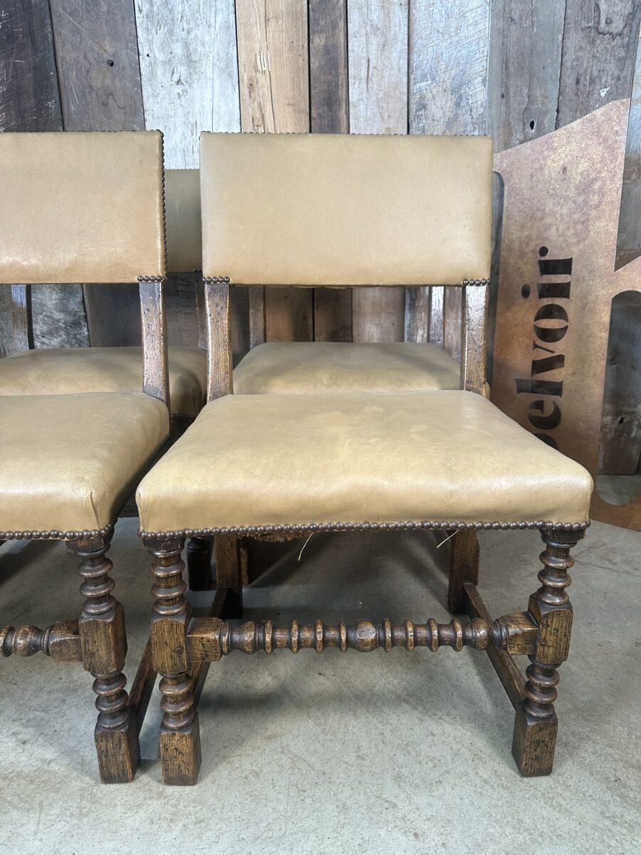 Antique Set Five Oak Leather Dining Cromwellian Chairs, c 1920