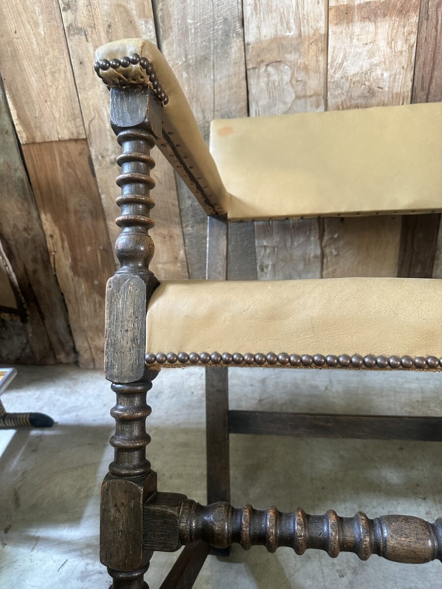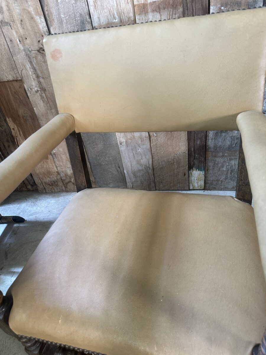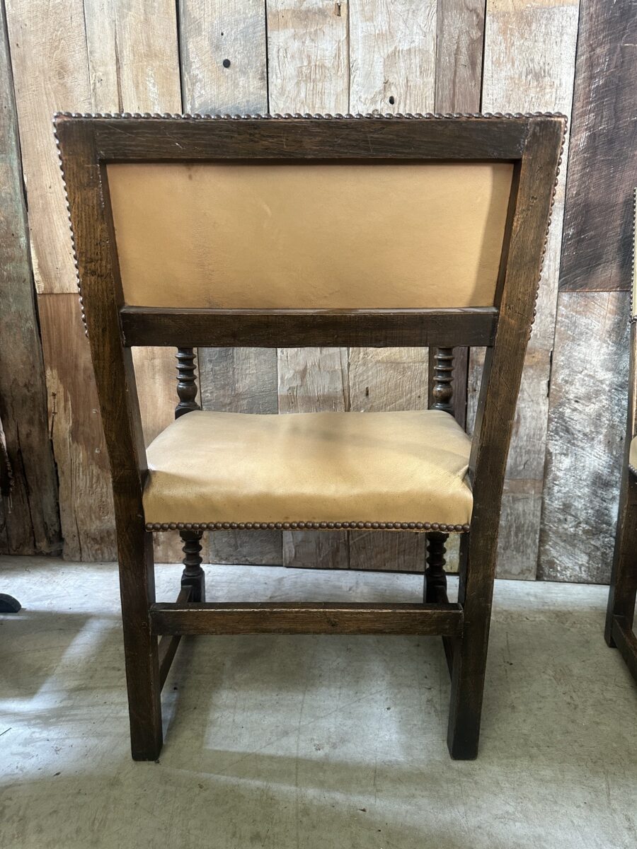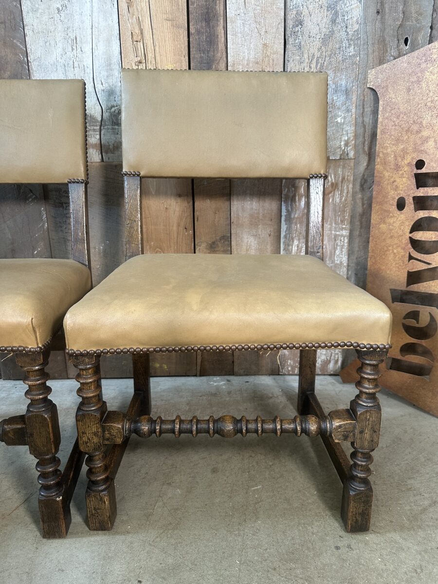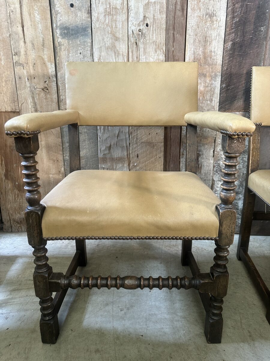 Antique Set Five Oak Leather Dining Cromwellian Chairs, c 1920