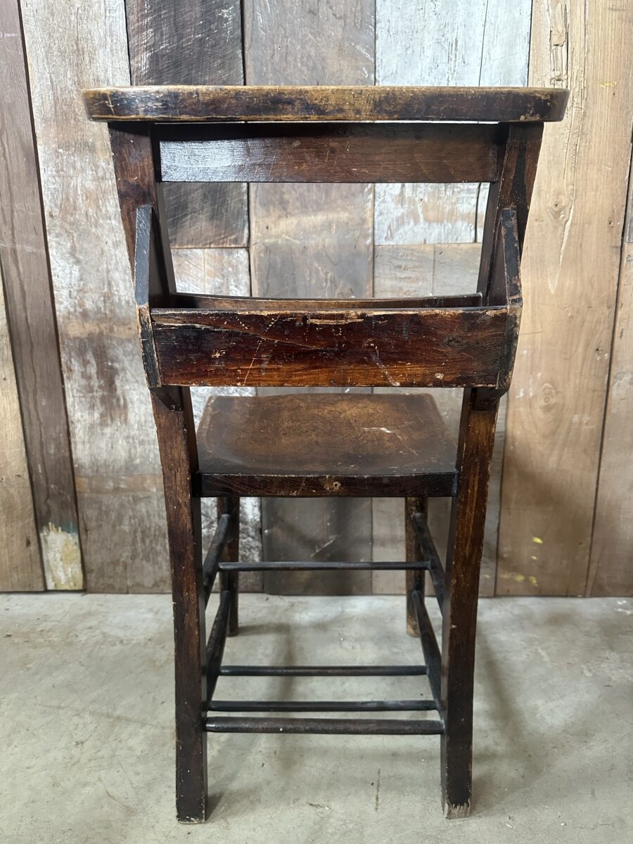 Antique Set Four Elm Victorian Chapel Dining Chairs, c 1880