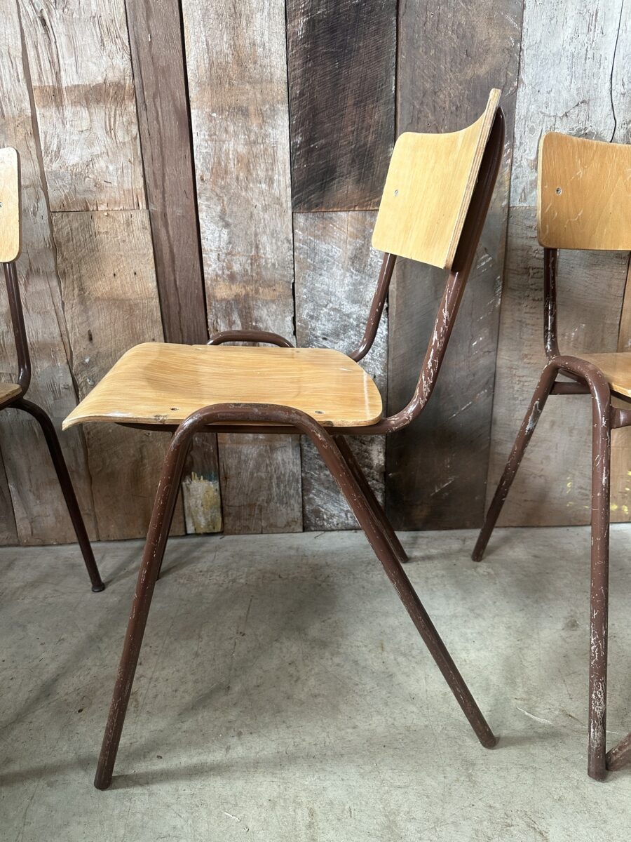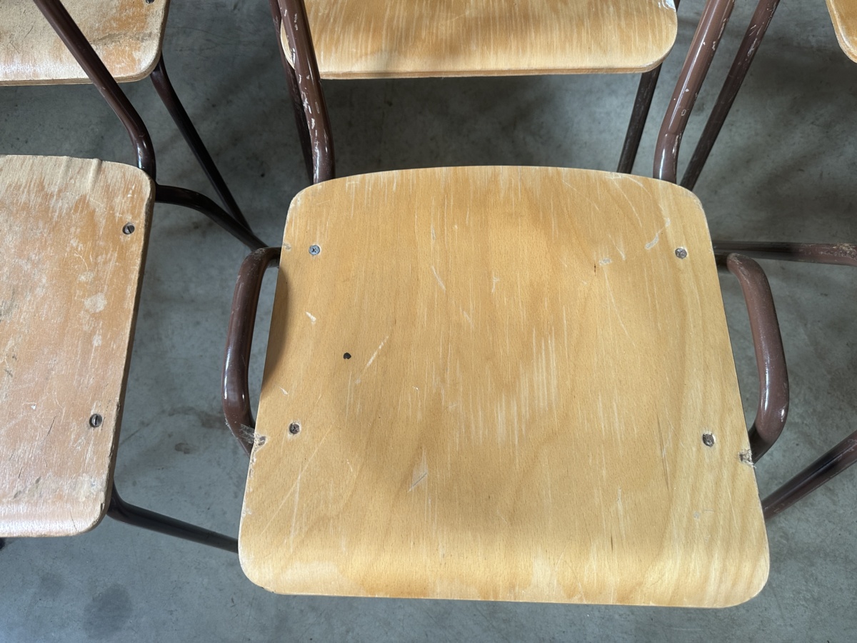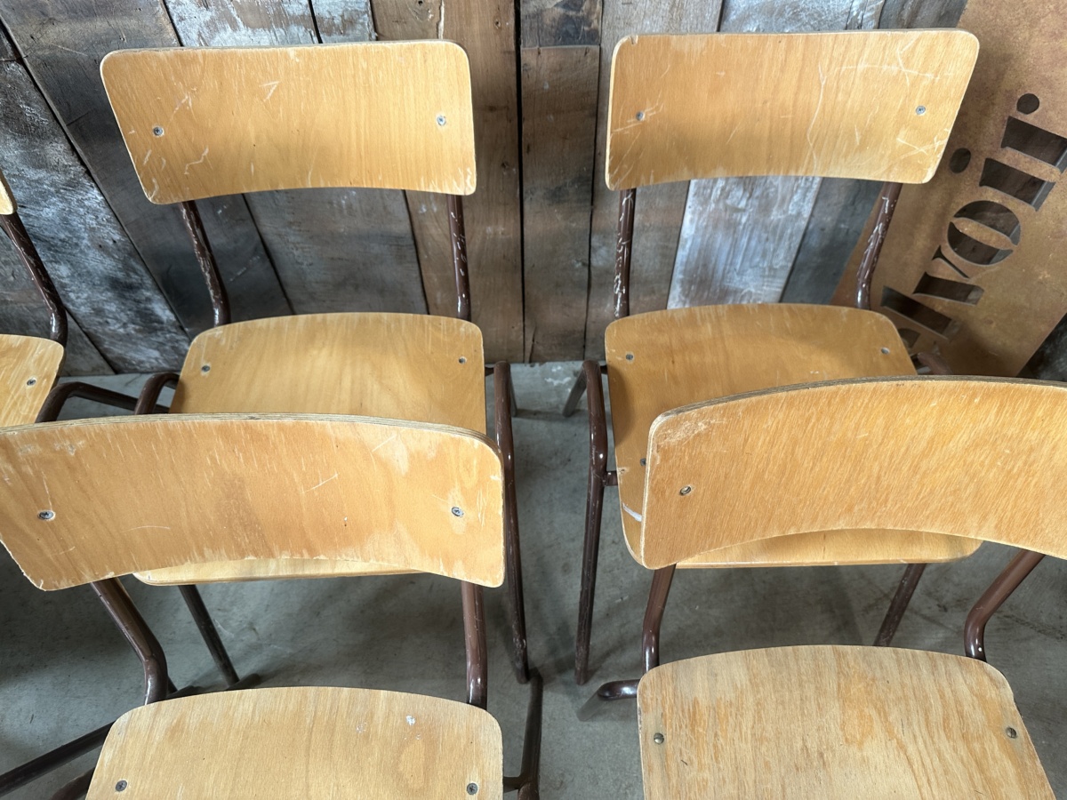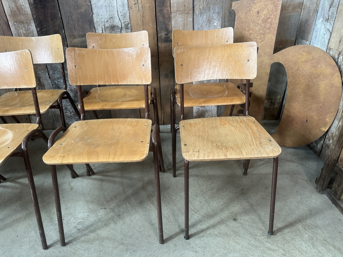 Vintage Set Eight Ply Beech Stacking Utilitarian Chairs