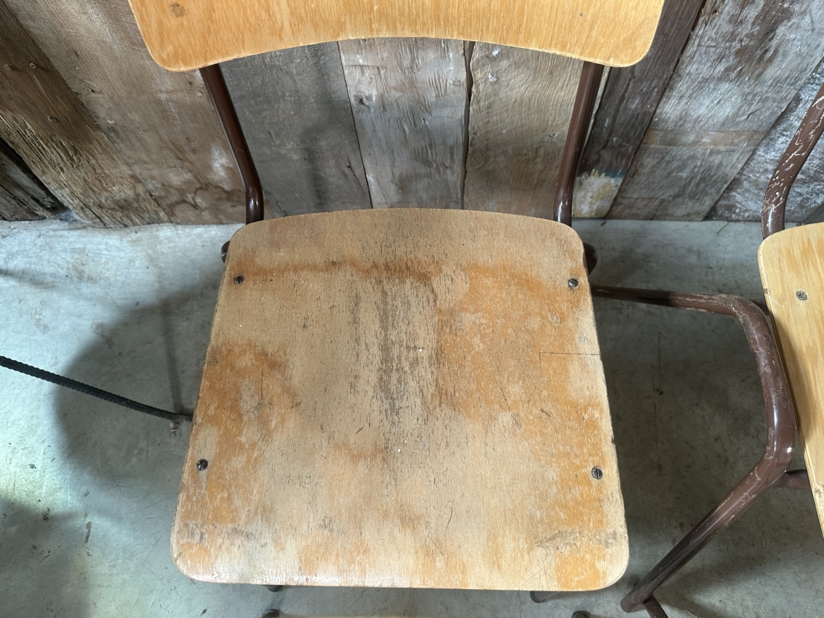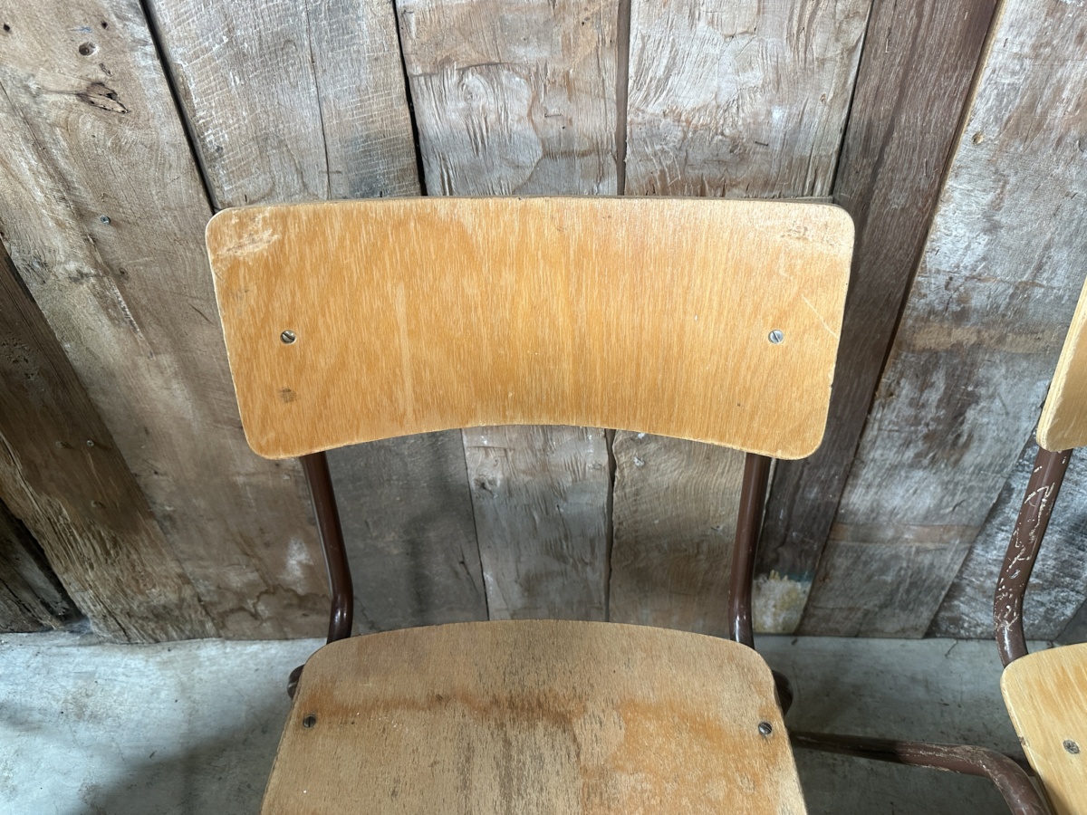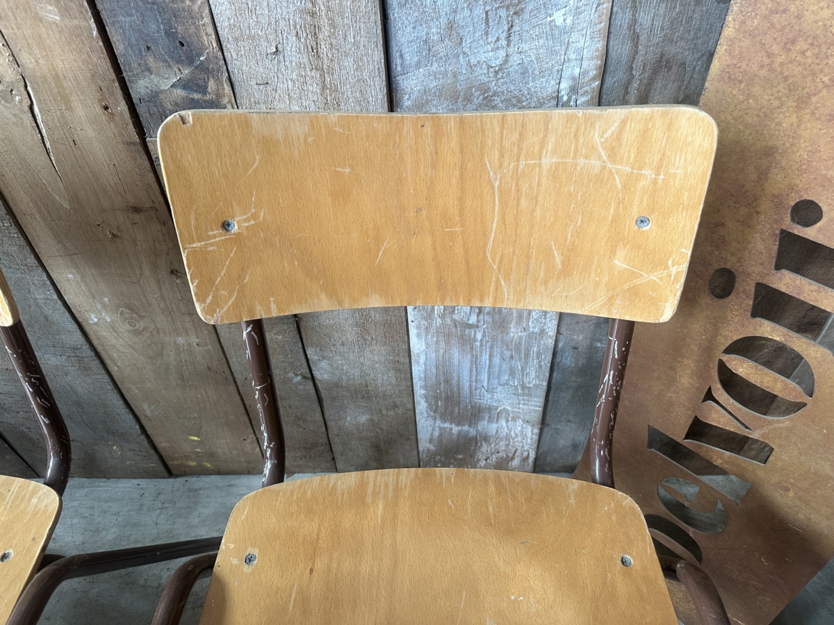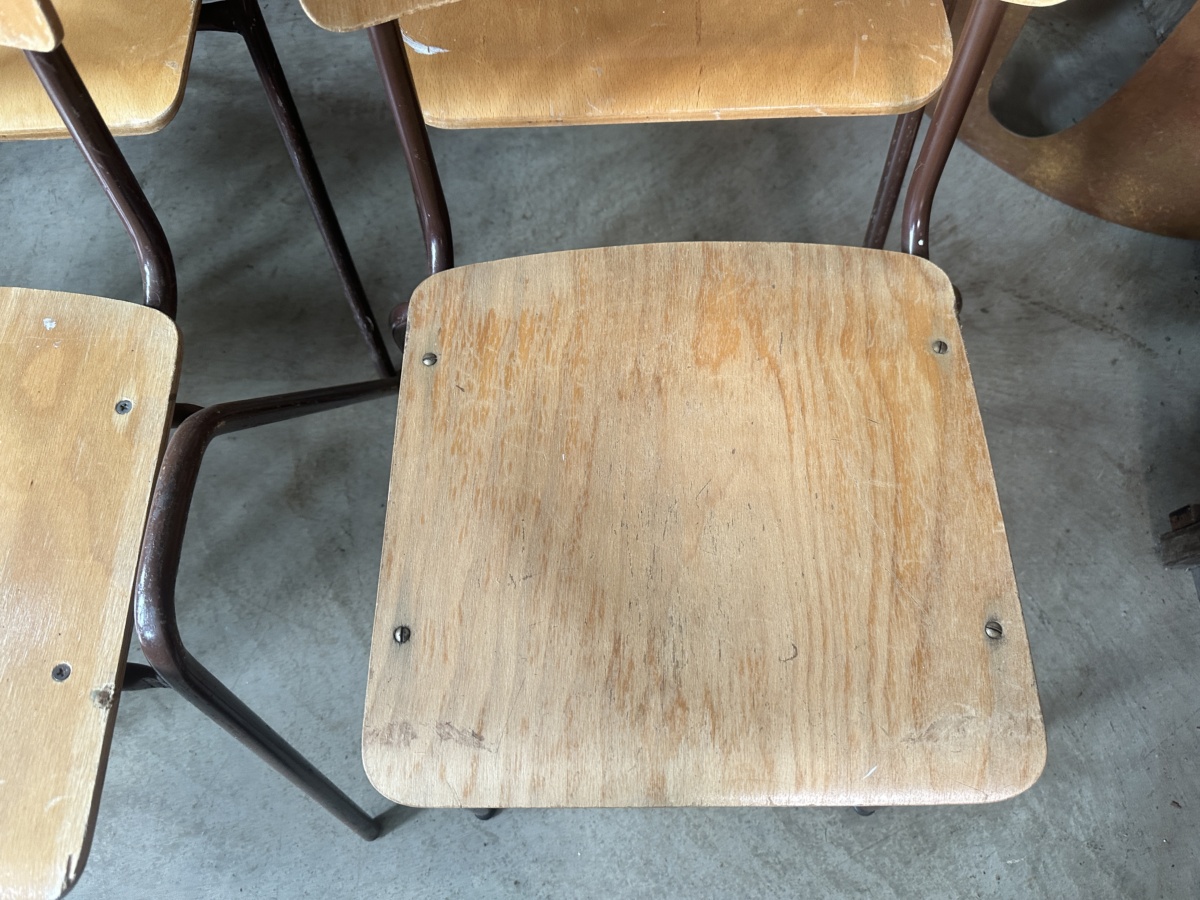 Vintage Set Eight Ply Beech Stacking Utilitarian Chairs