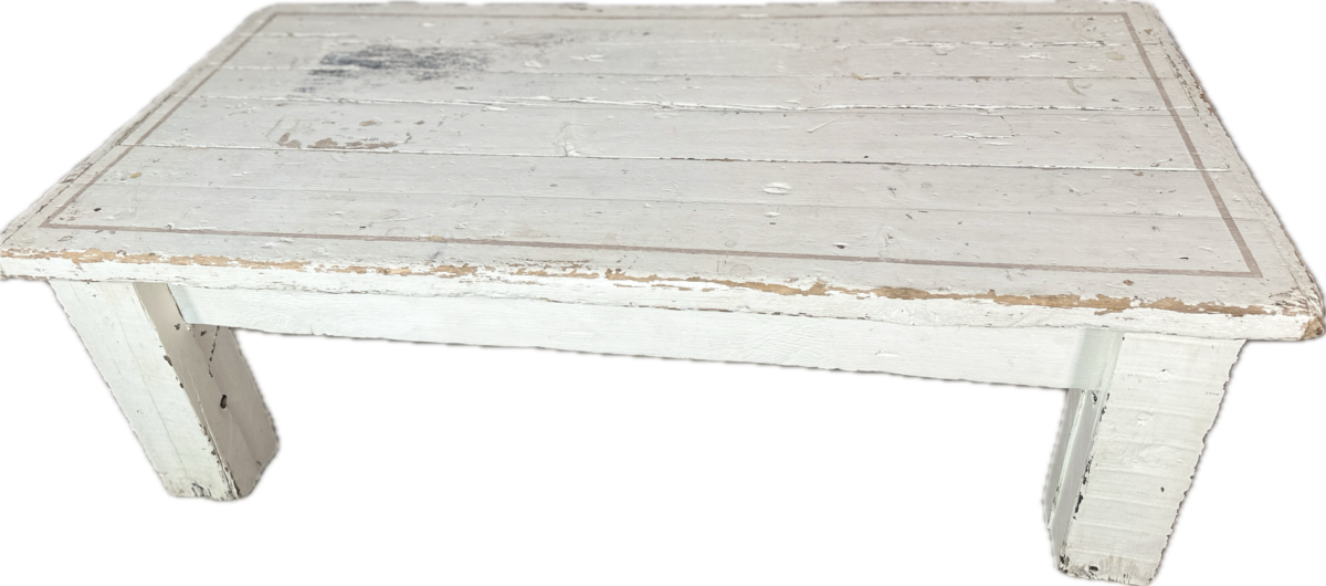 Good solid painted pine and oak farmhouse coffee table. Cleated plank top over substantial legs. Good order throughout