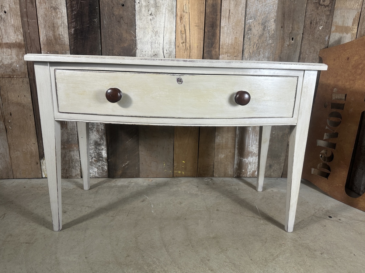 Antique Painted Pine Bow Front Console Hall Table Cream