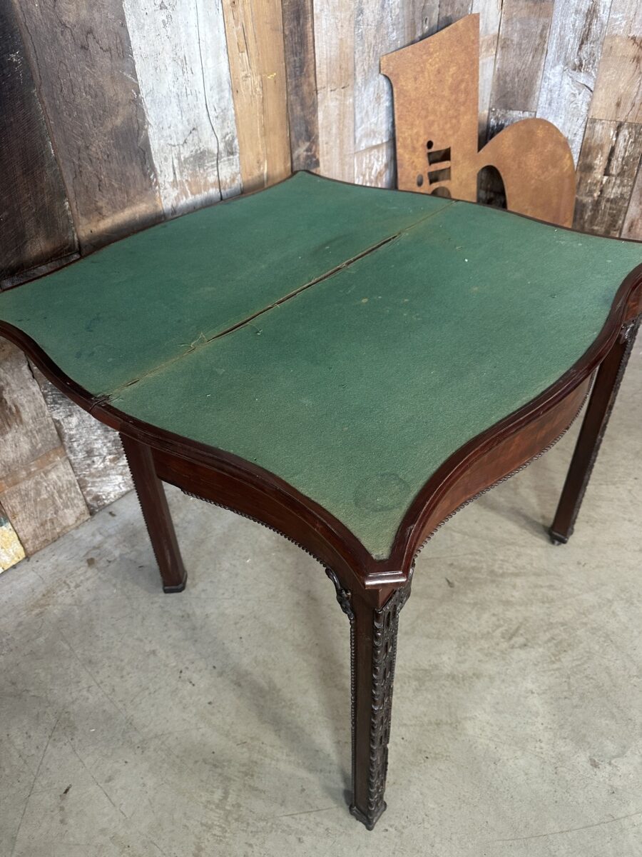 Antique Regency Mahogany Serpentine Fold Over Card Table, c 1820. L90