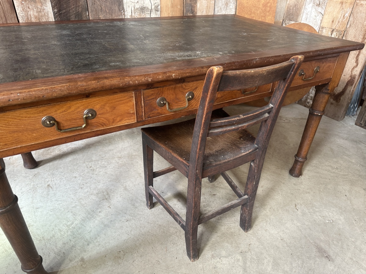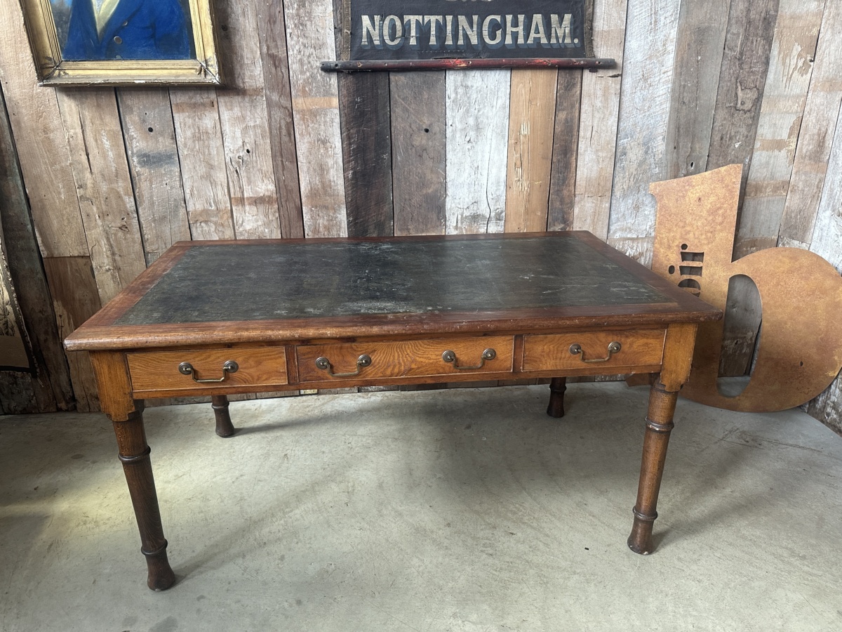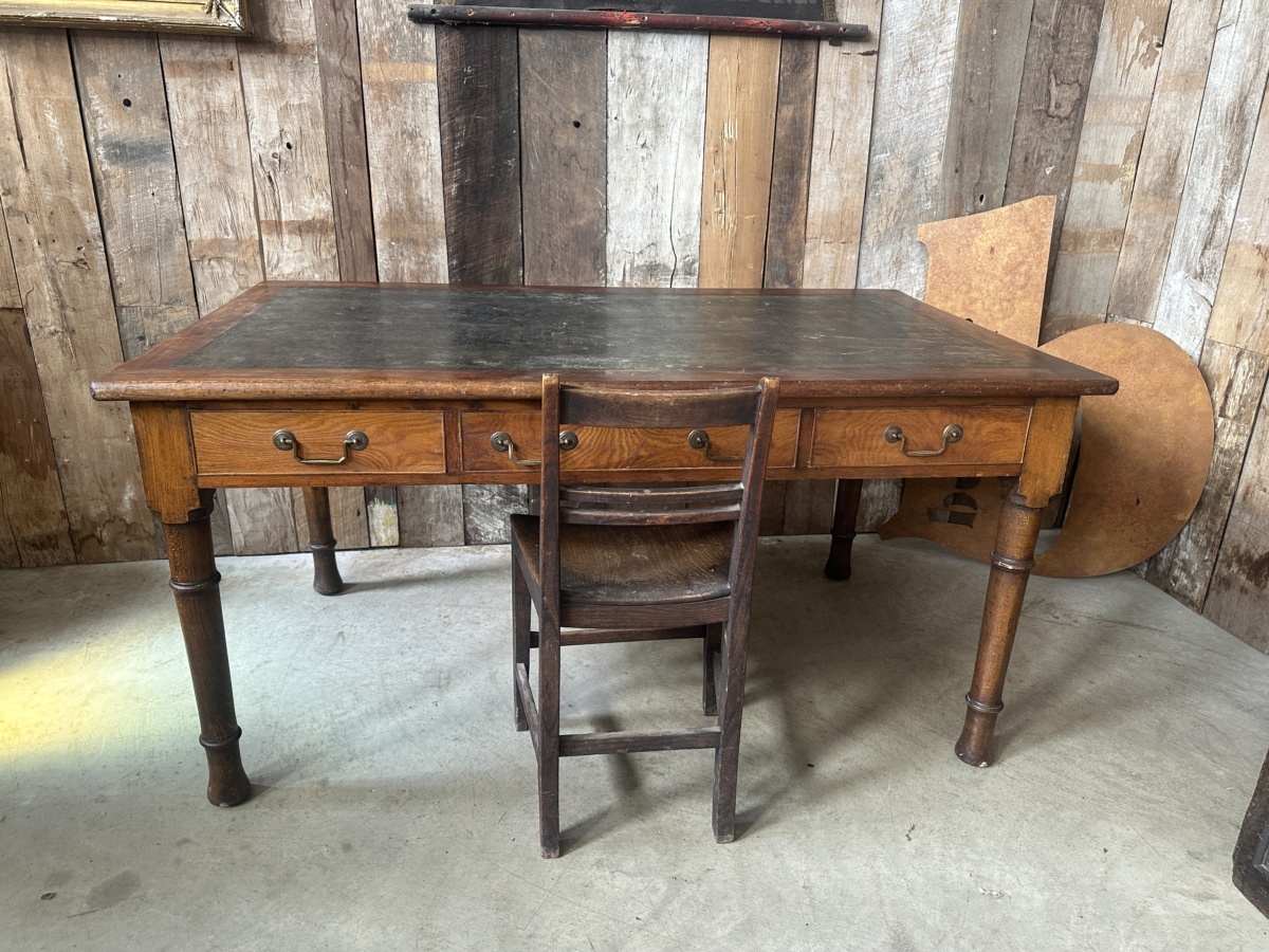Antique Utility Oak Office Desk Wake and Dean, c 1940