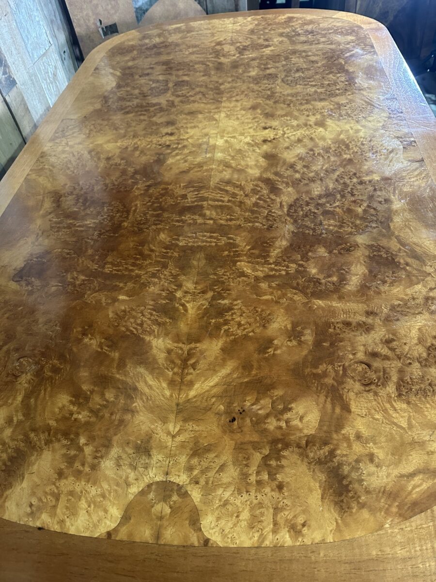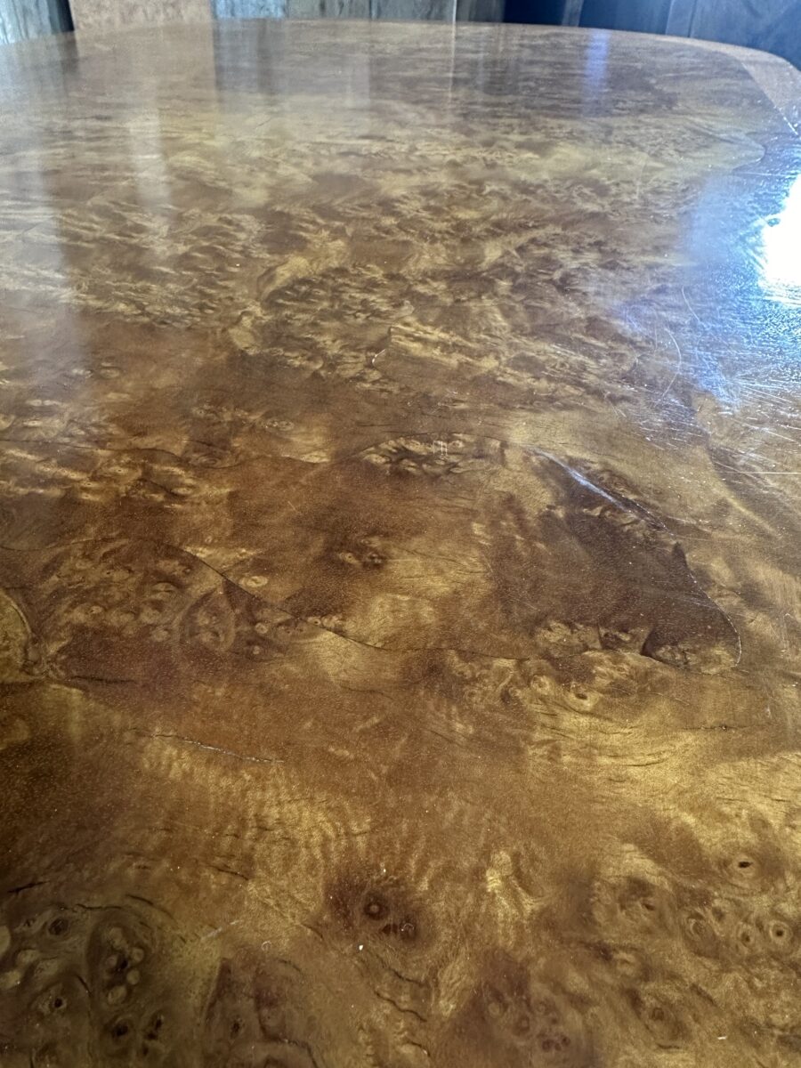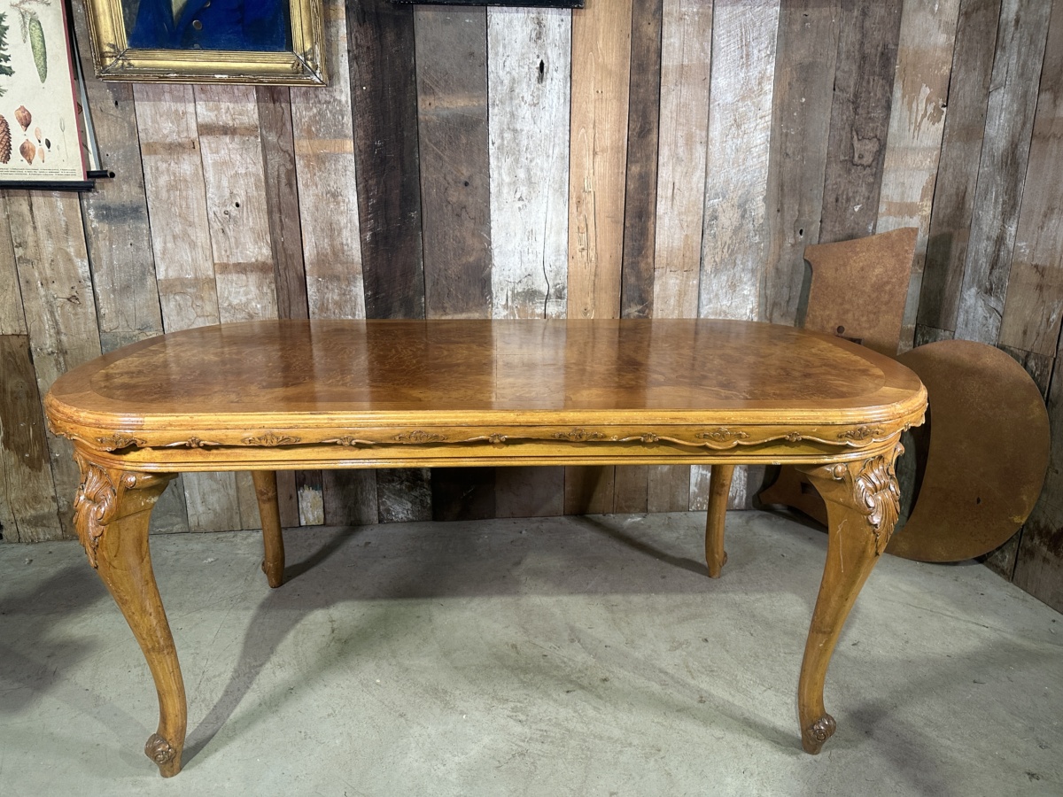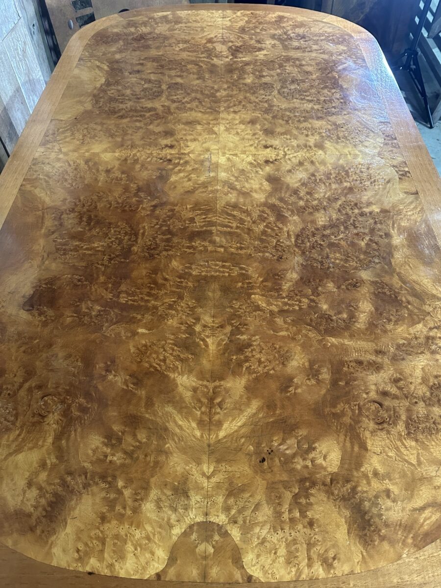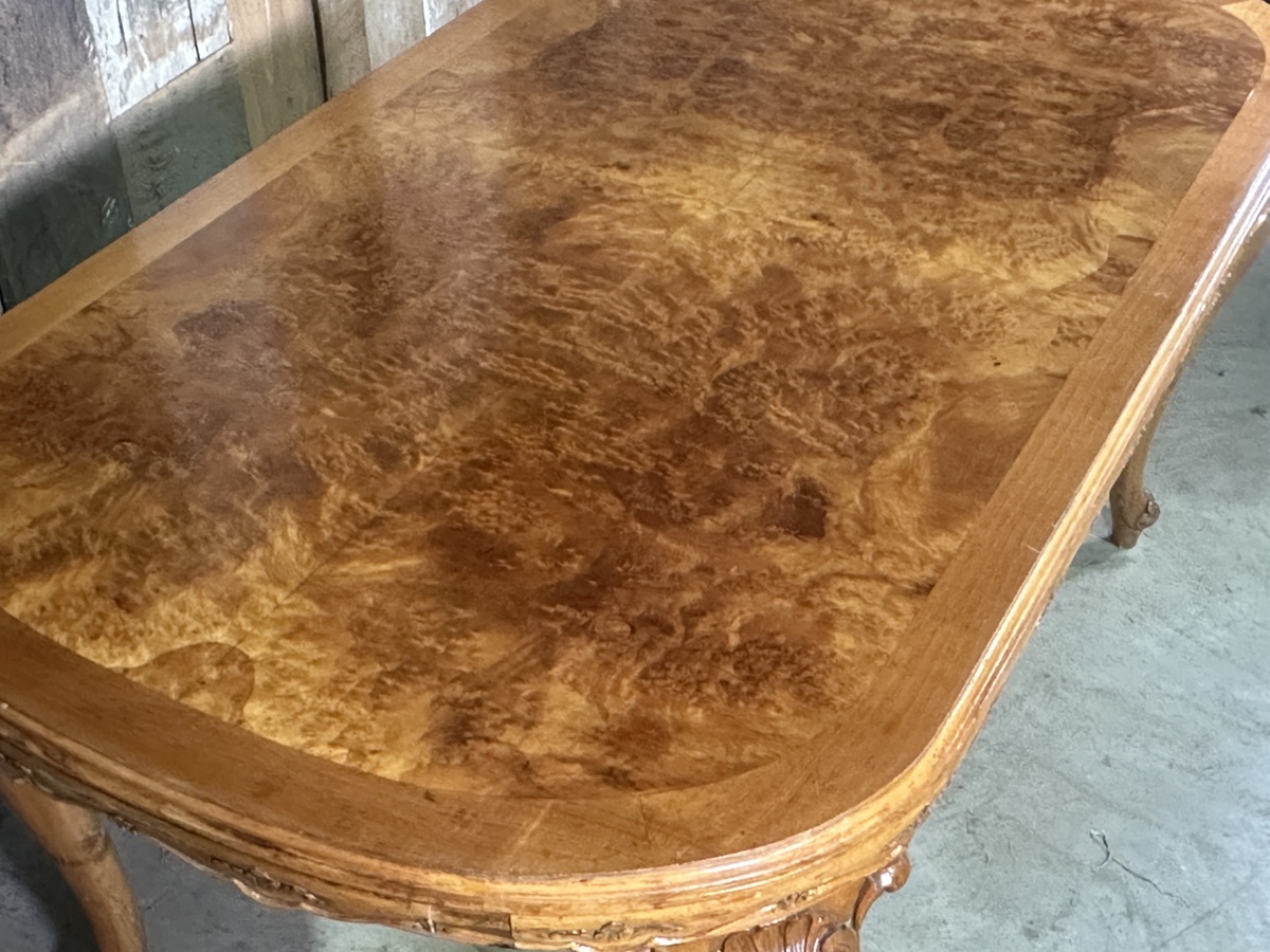 Antique French Burr Walnut Art Nouveau Oval Dining Table