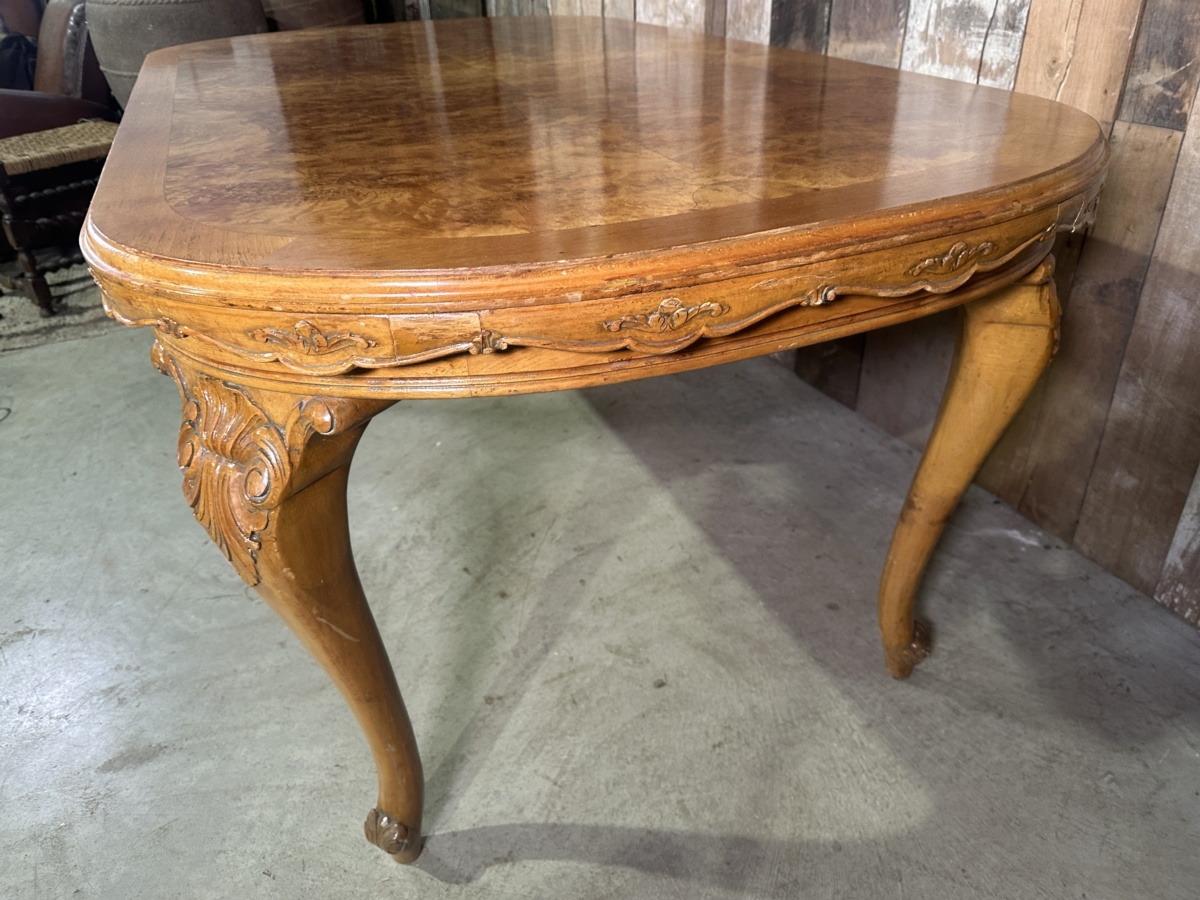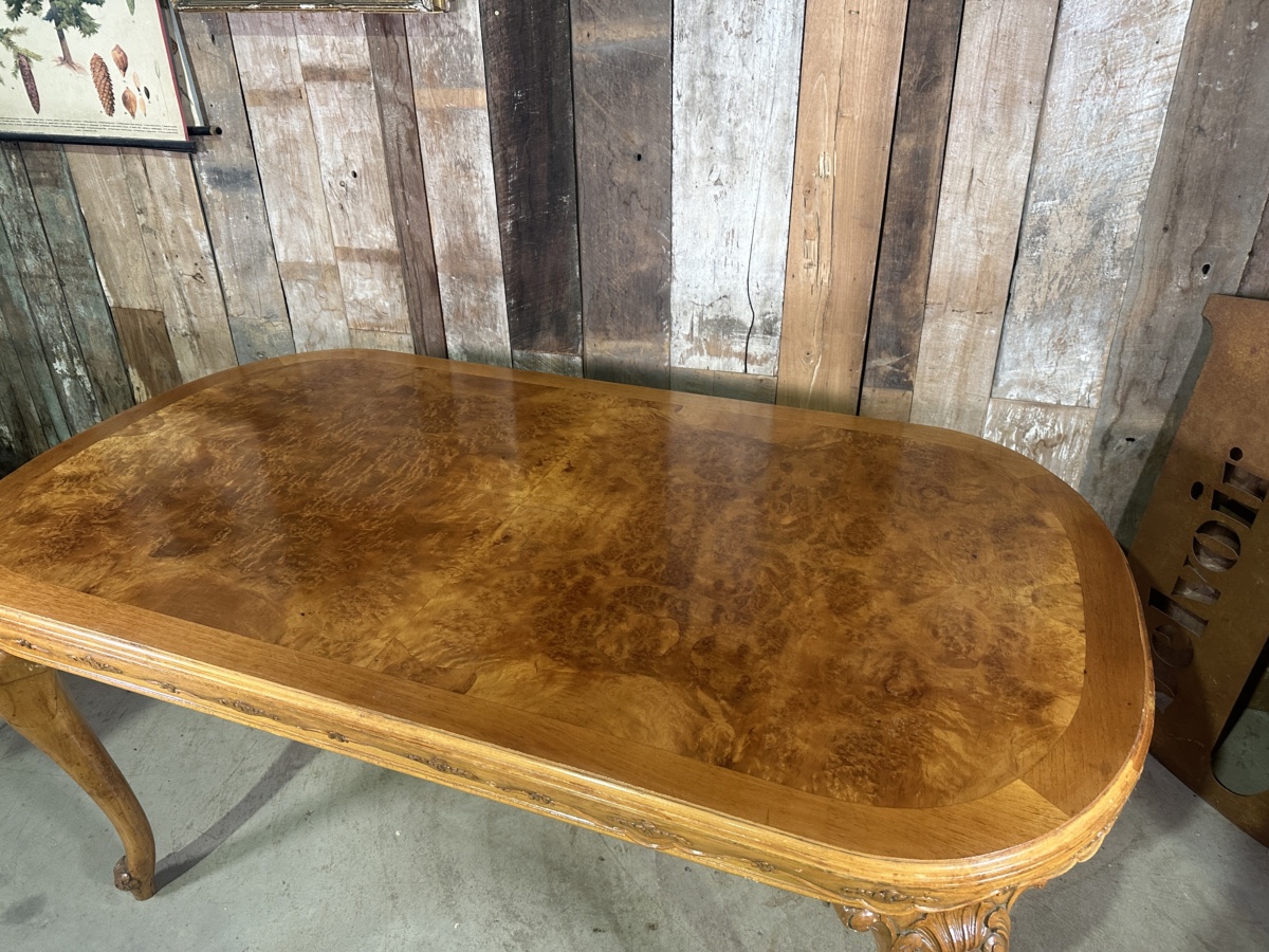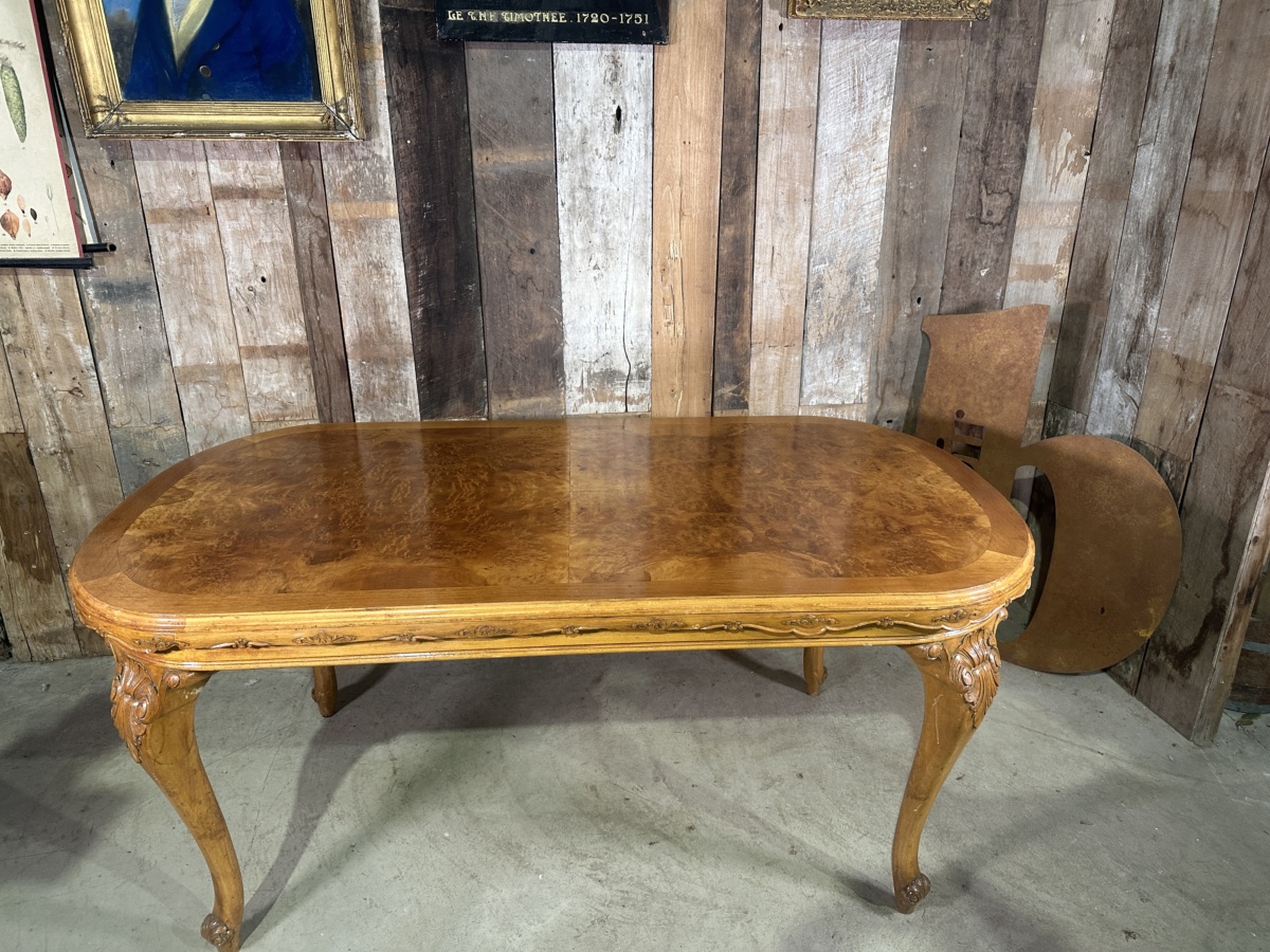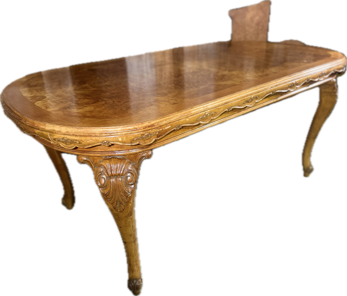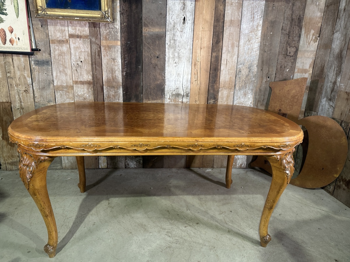 Antique French Burr Walnut Art Nouveau Oval Dining Table