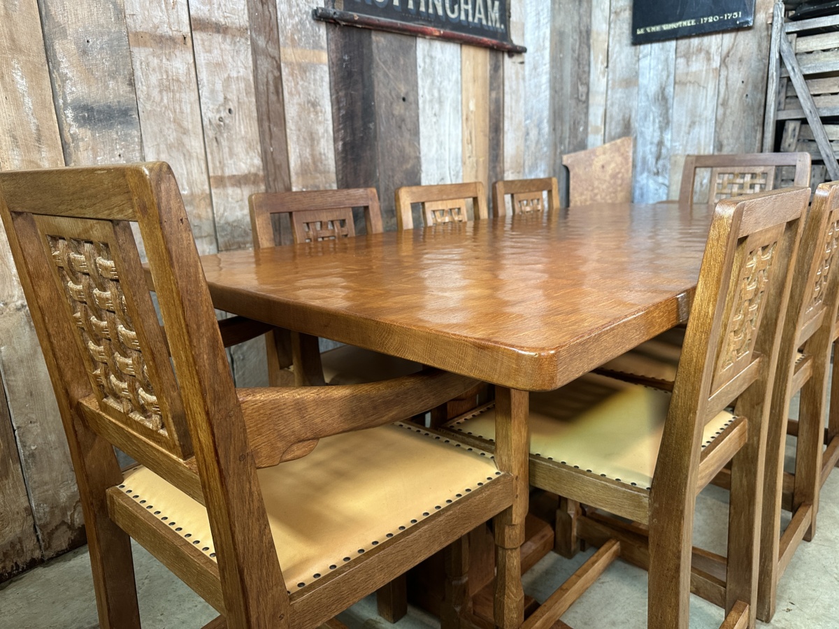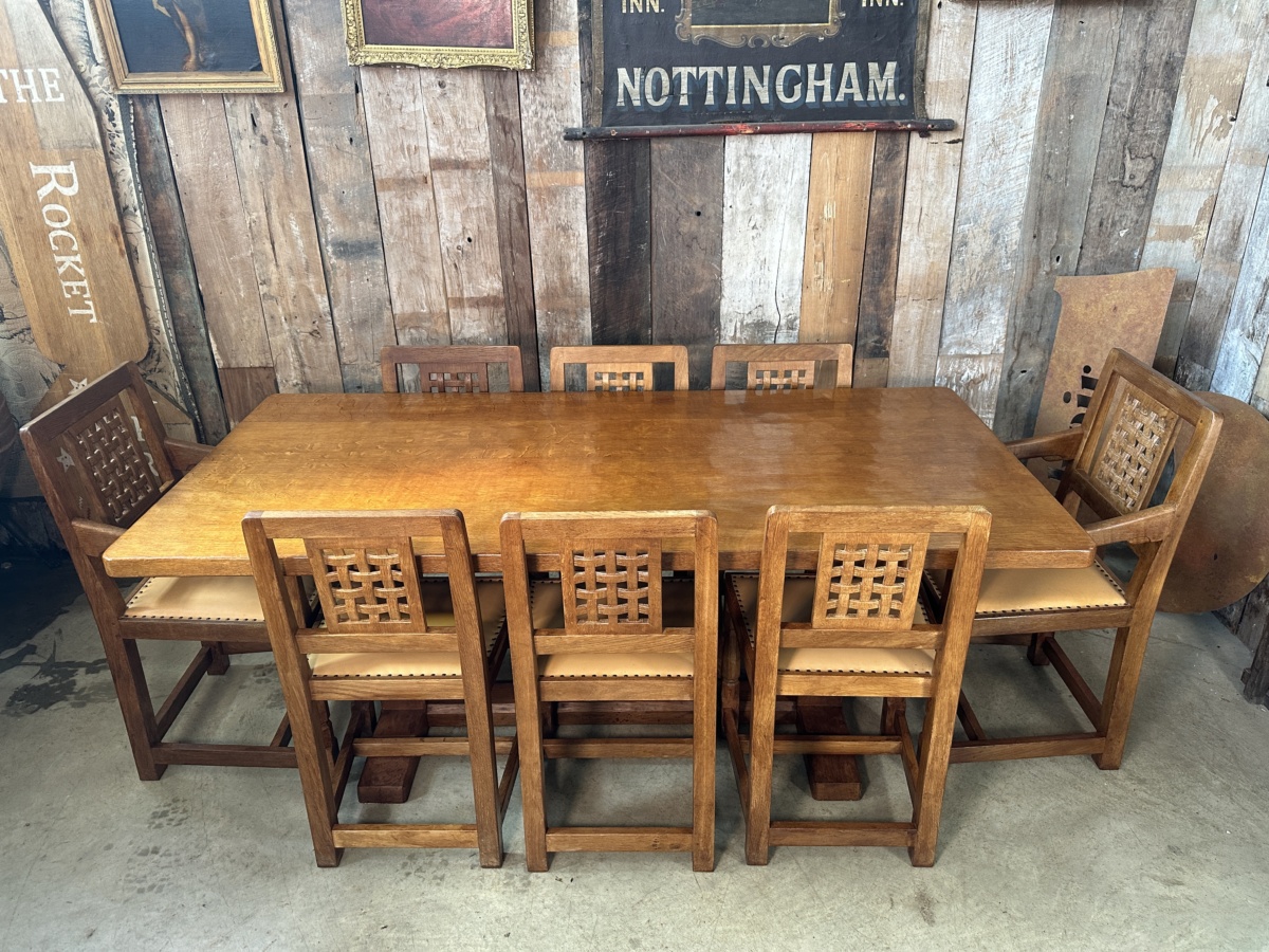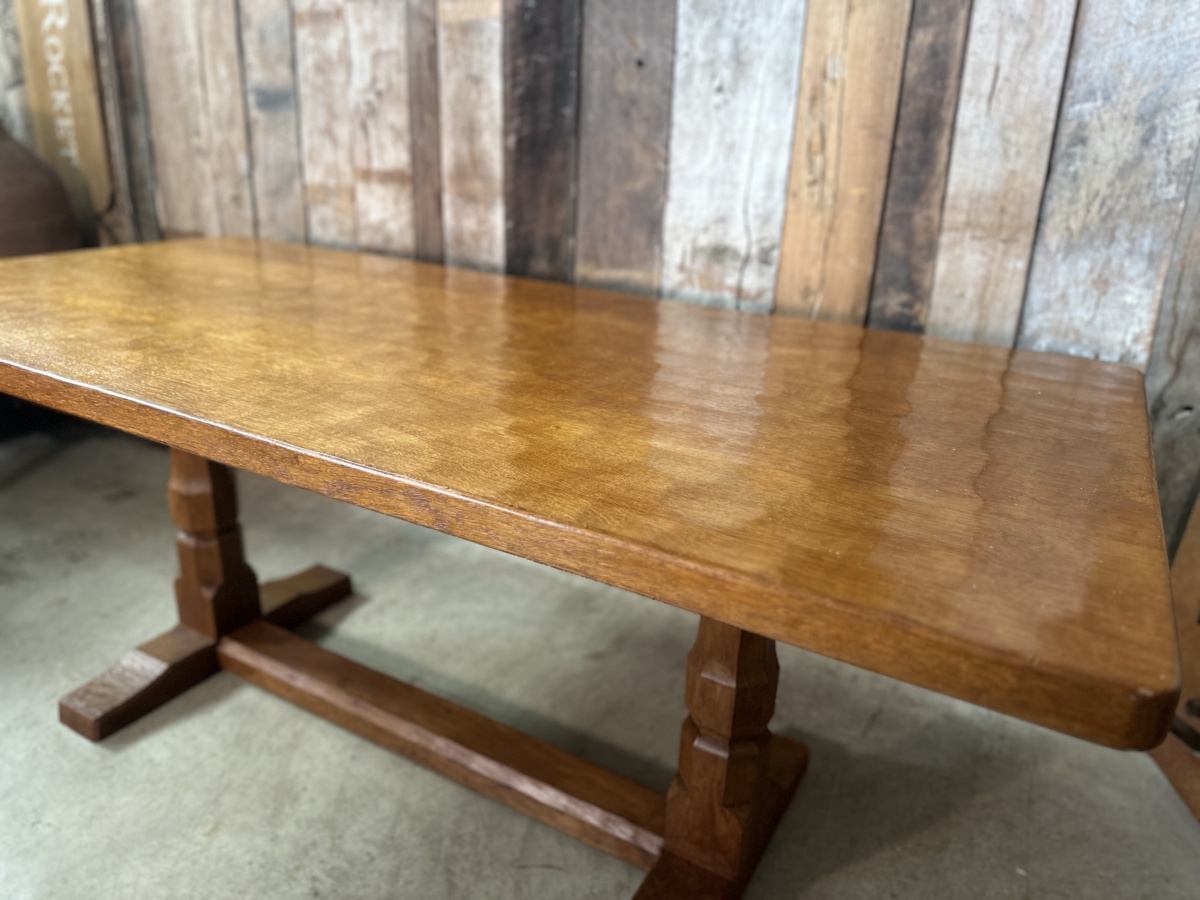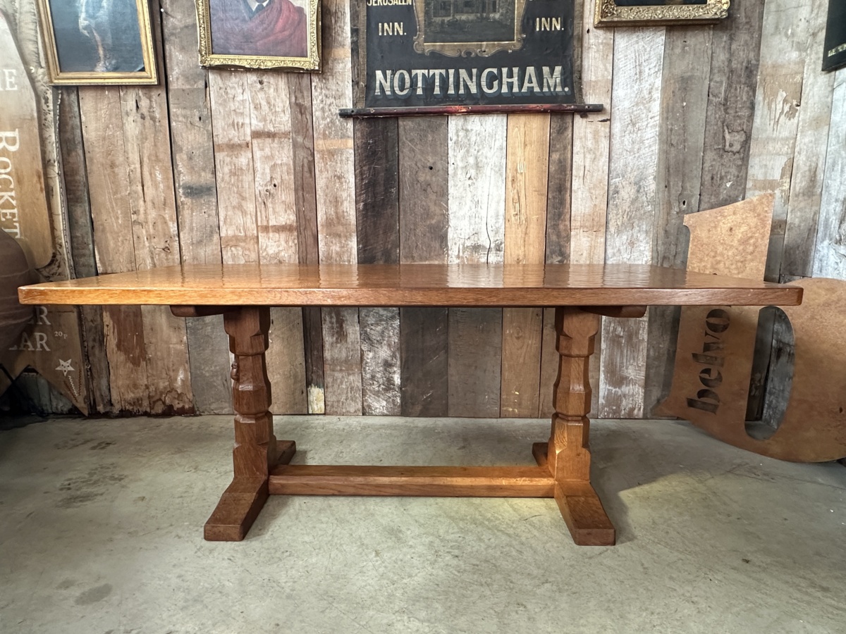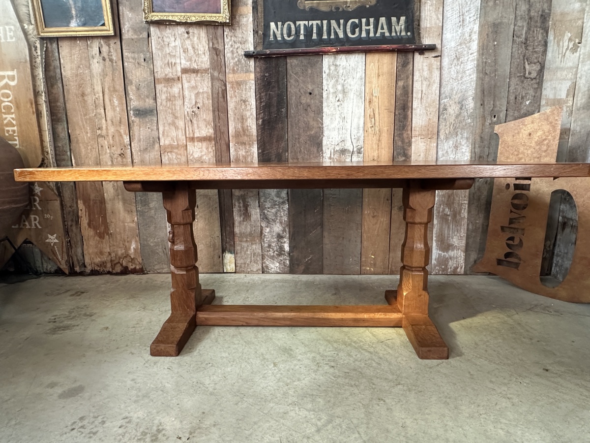 Vintage Arts and Crafts Robert Thompson Mouseman Oak Refectory Dining Adzed Table. L183