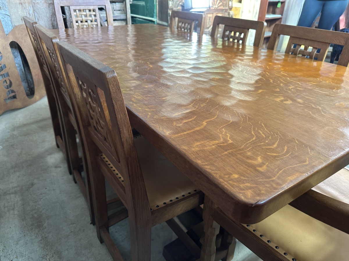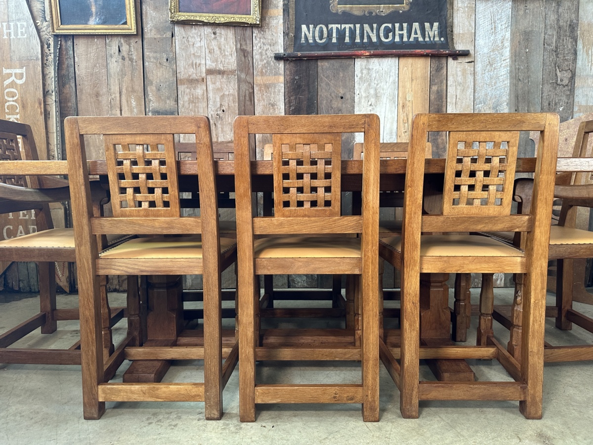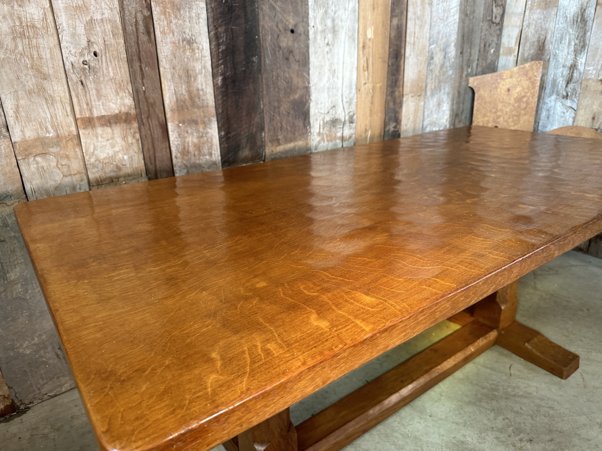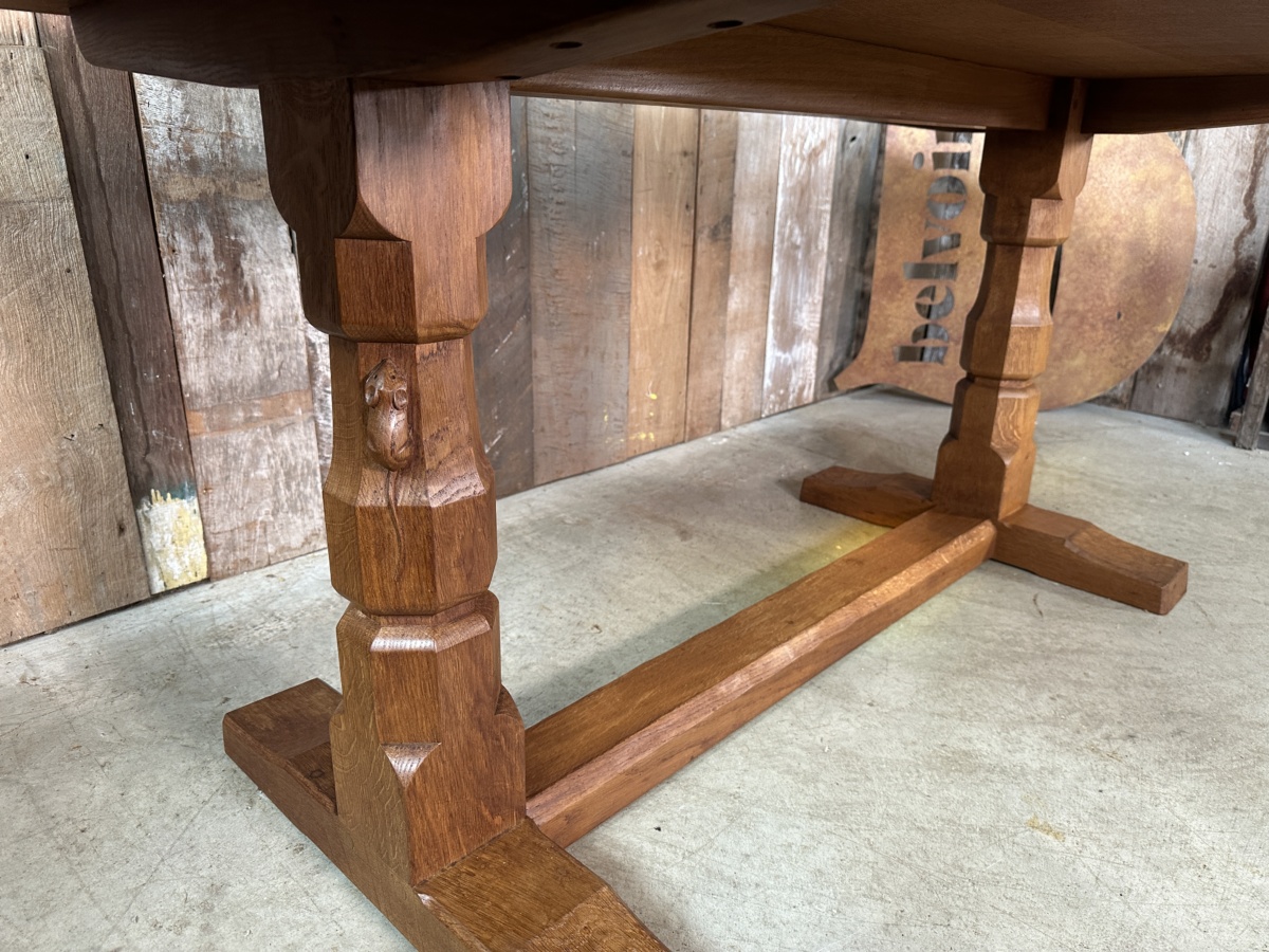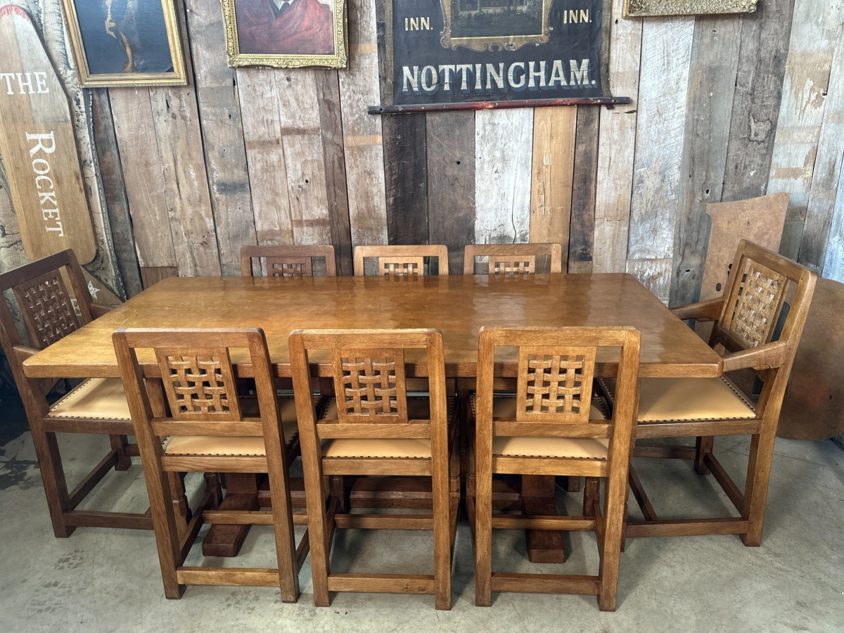 Vintage Arts and Crafts Robert Thompson Mouseman Oak Refectory Dining Adzed Table. L183