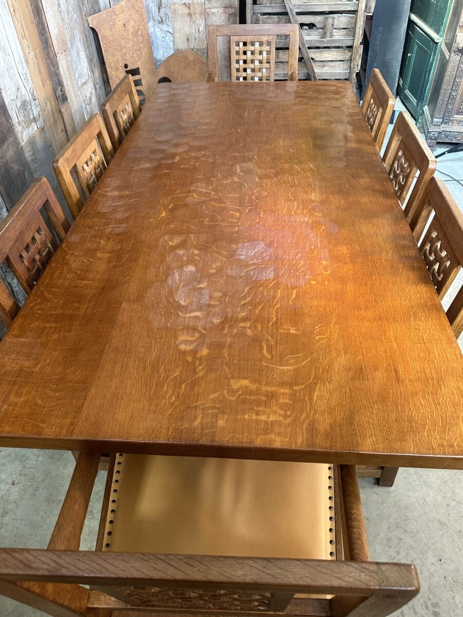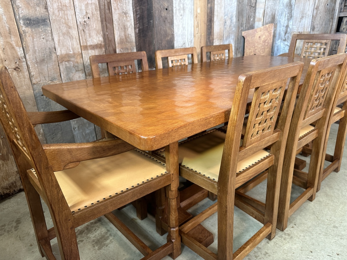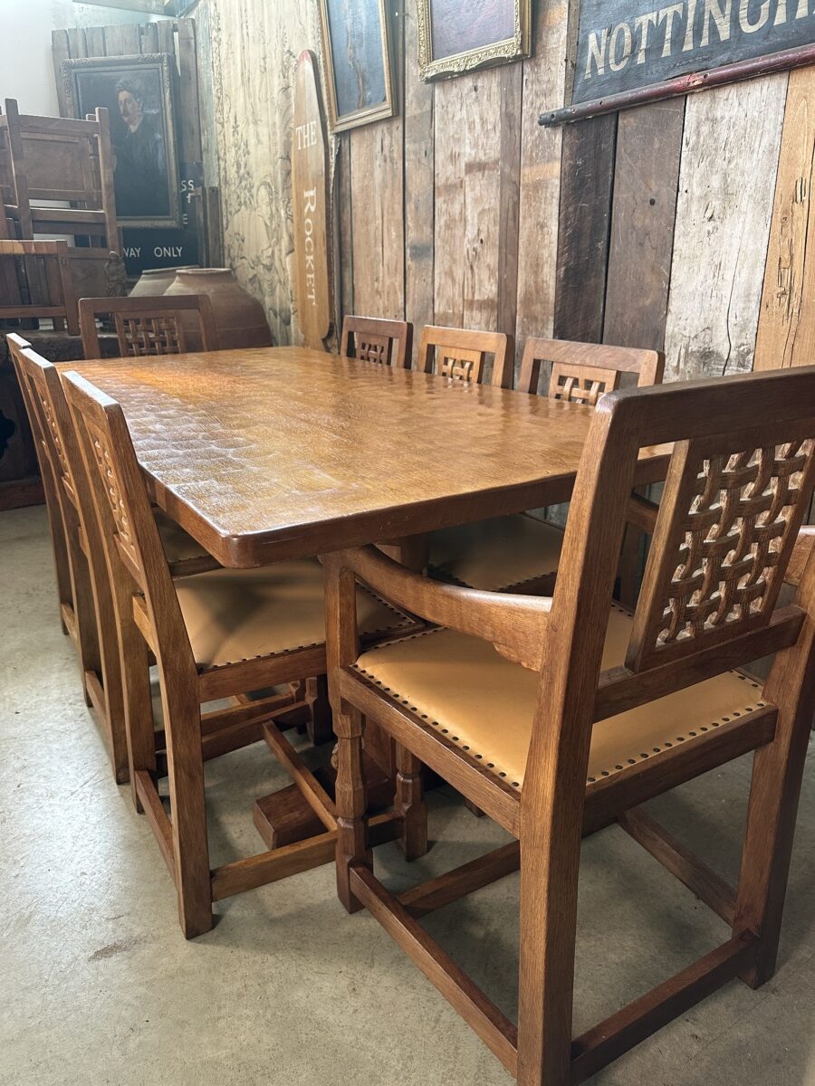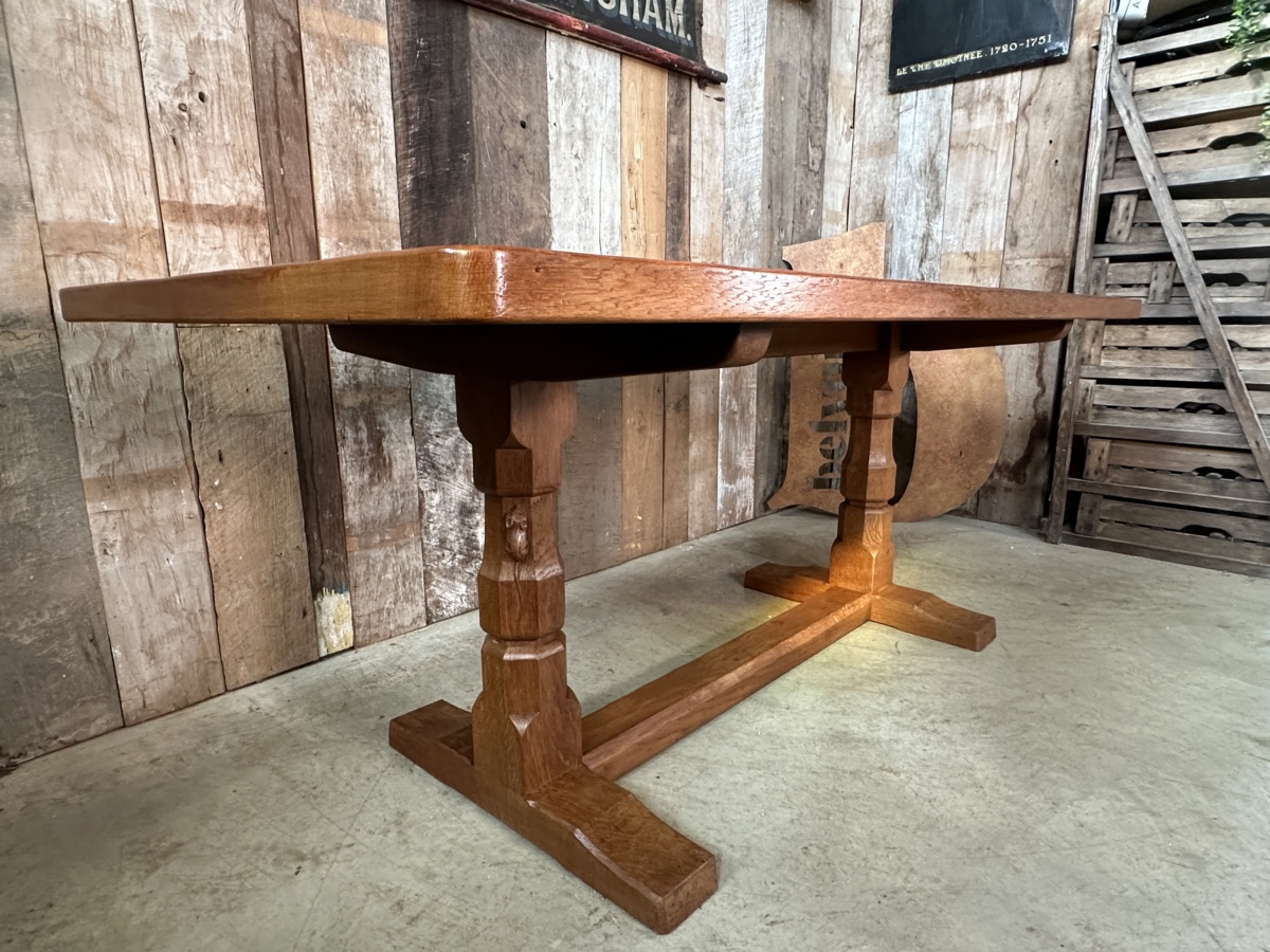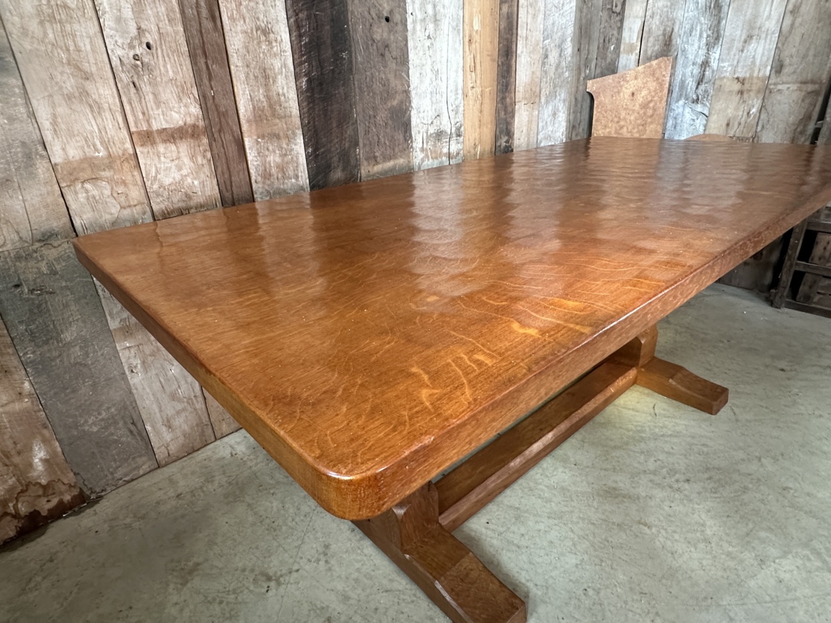 Vintage Arts and Crafts Robert Thompson Mouseman Oak Refectory Dining Adzed Table. L183