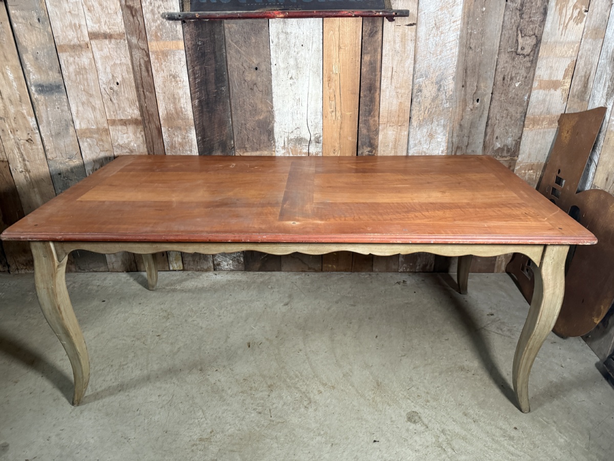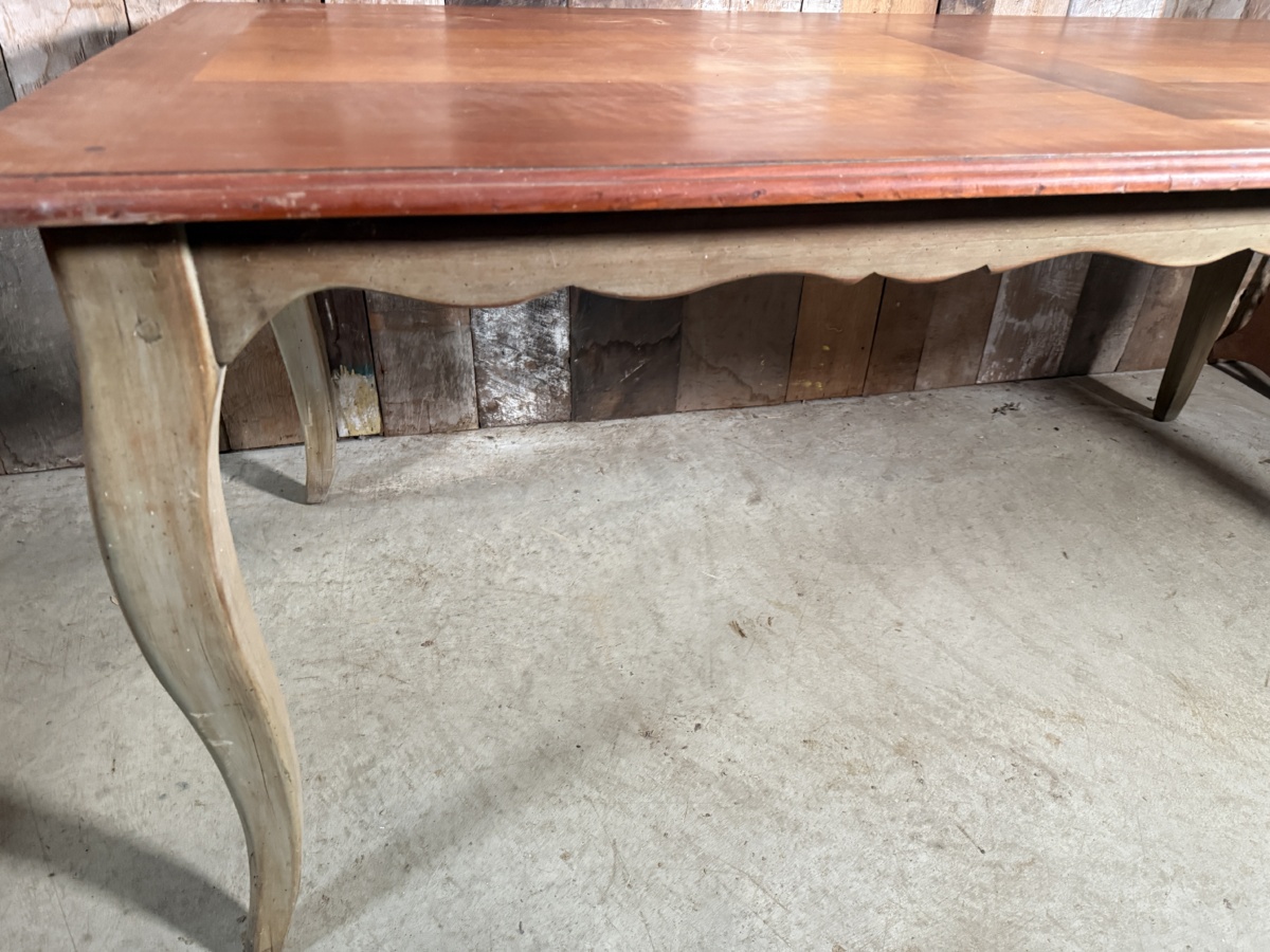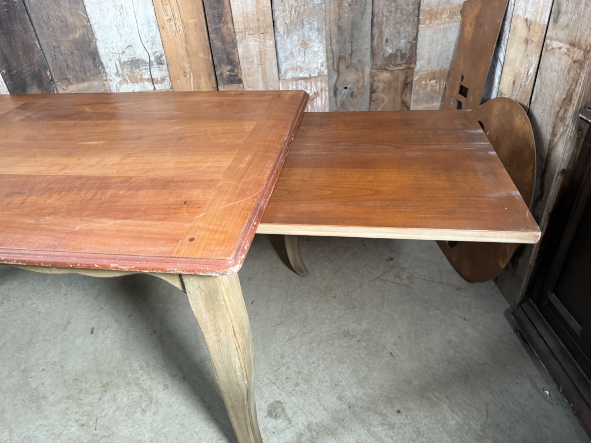 Good quality vintage French farmhouse chestnut dining table. Drawer to one end. Bread board extending leaf to other. Scalloped apron. Good solid order throughout.