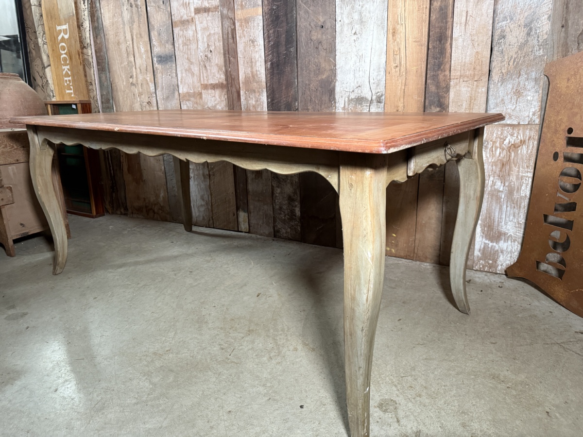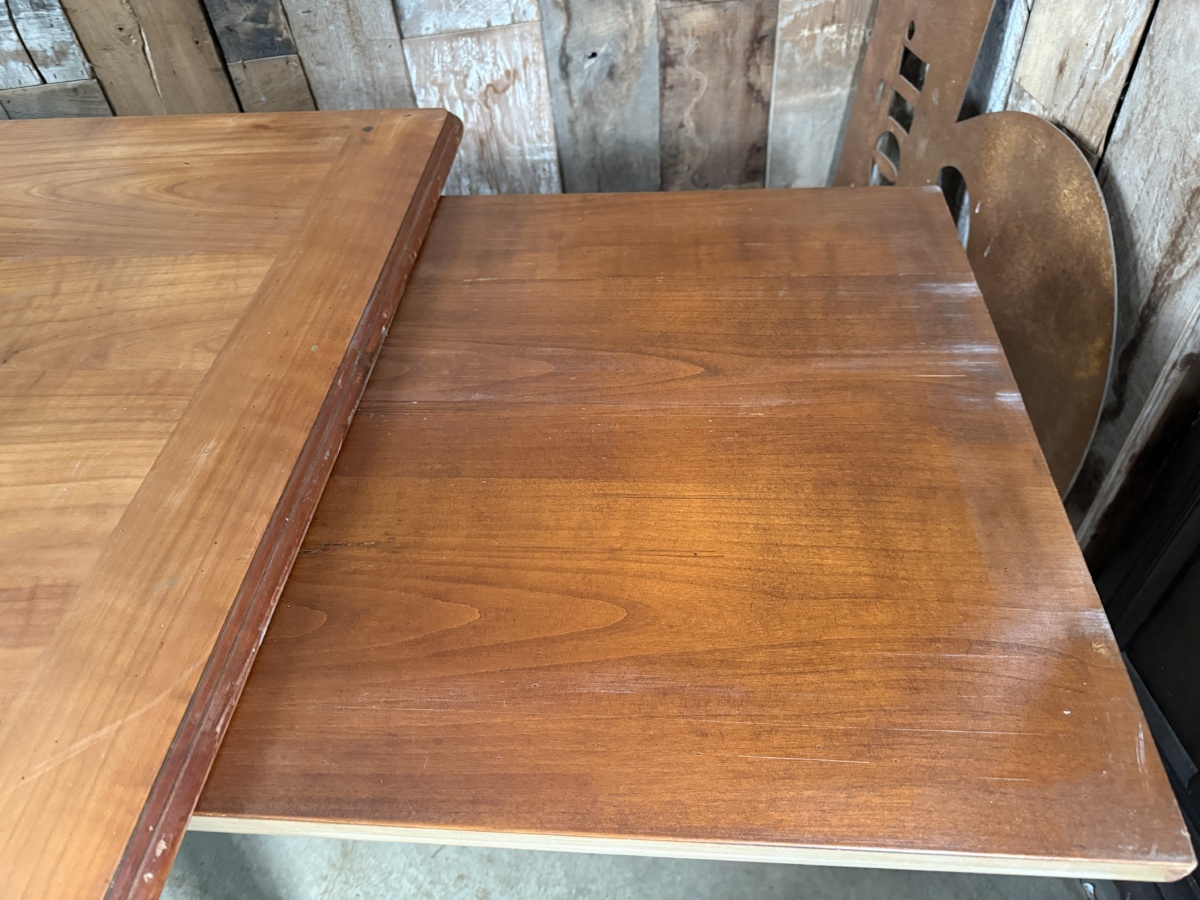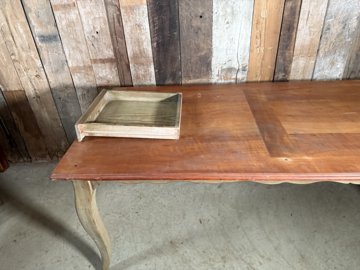 Good quality vintage French farmhouse chestnut dining table. Drawer to one end. Bread board extending leaf to other. Scalloped apron. Good solid order throughout.