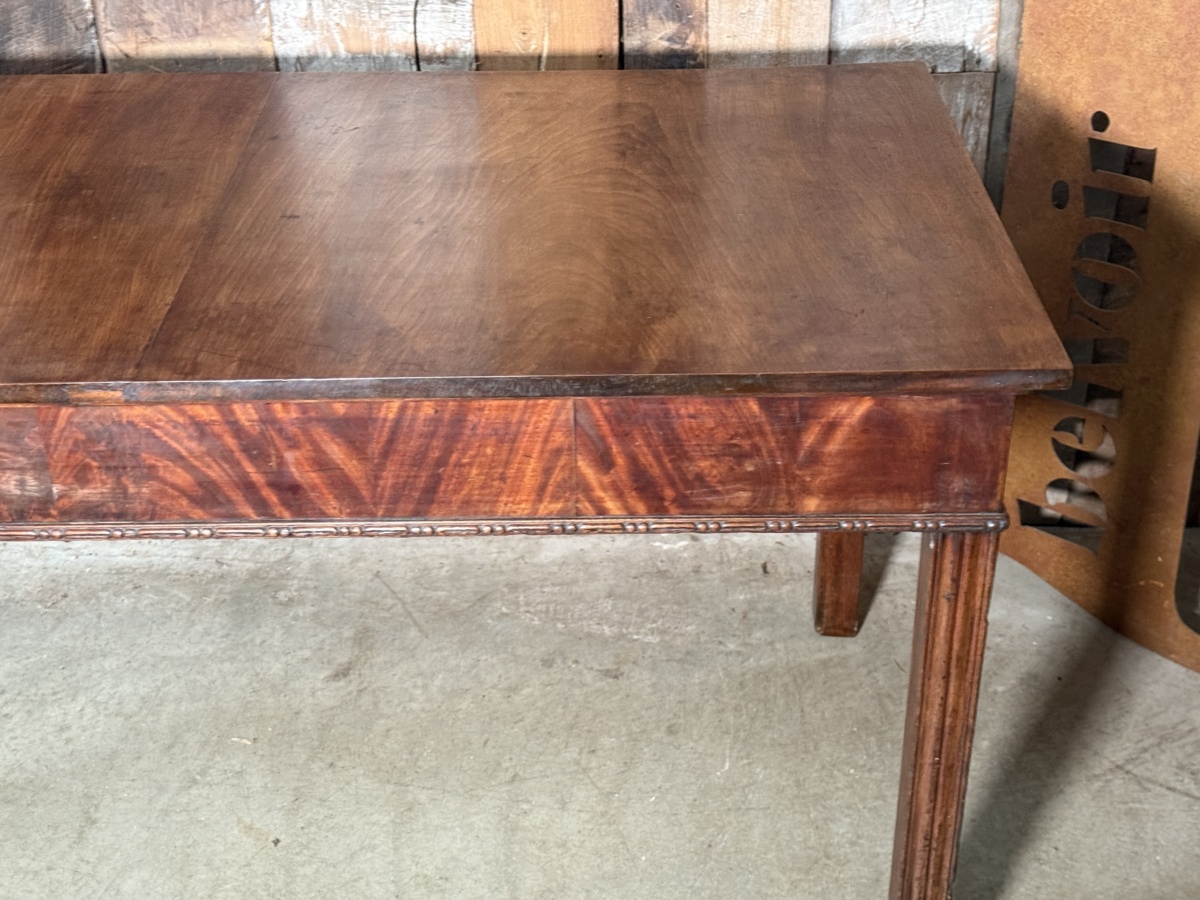 An impressive Regency console serving hall table, dating from the early eighteen hundreds. Good colour and patination to the top, reeded legs. Solid throughout.